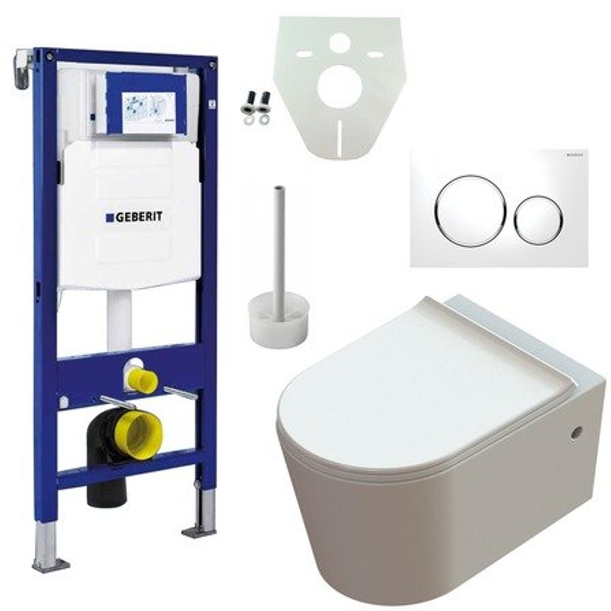 Nemo Spring Nemo Spring Moon pack WC suspendu - Geberit Systemfix - élément de montage - plaque de déclenchement Geberit Sigma 20 blanc brillant chromé - kit d'isolation Geberit modérateur de débit - blanc
