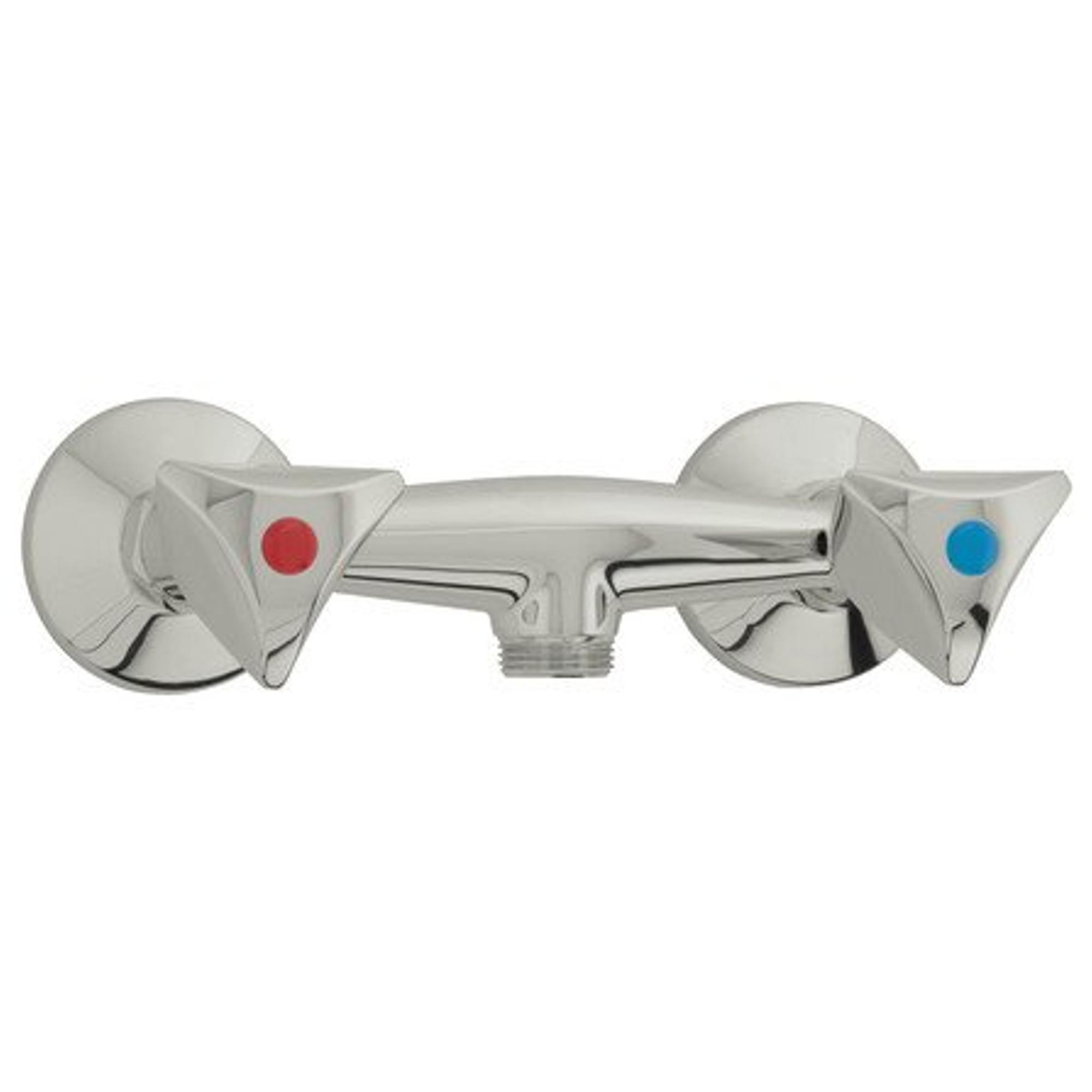 - Modèle mural à deux trous avec un entraxe de 15 cm, adapté aux raccordements de douche les plus courants.