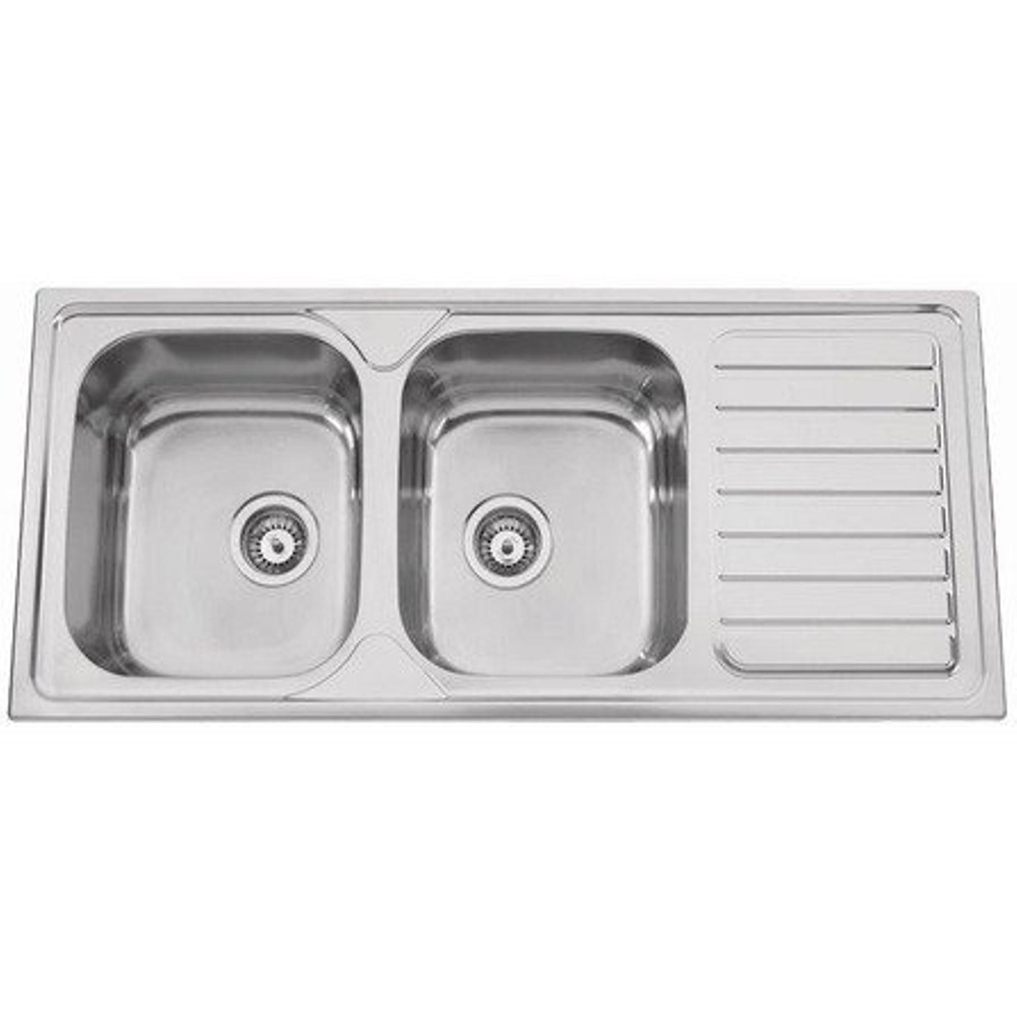 Nemo Start Mdoc évier encastré en acier inoxydable poli épaisseur 0,6 mm 2 bacs avec égouttoir 1160 x 500 mm réversible complet
