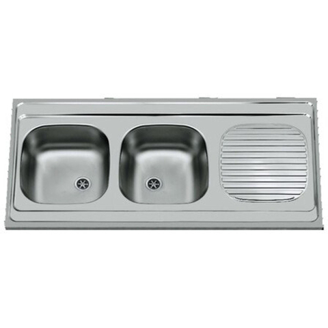Nemo Start Bordeaux Évier de cuisine à poser - 2 bacs - égouttoir - réversible - 120x60cm - sans kit de fixation - bonde - garniture de trop-plein - sans siphon - inox