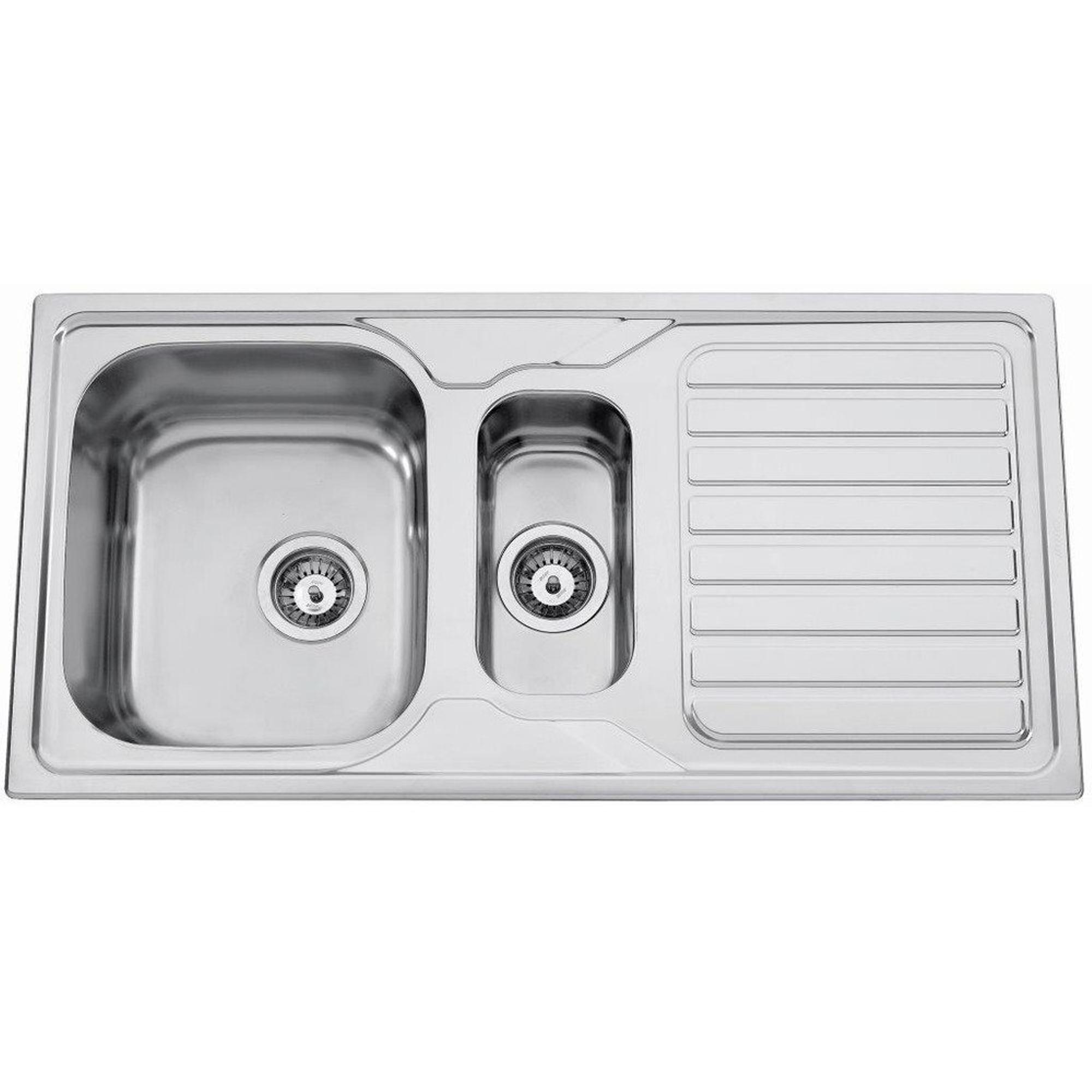 Nemo Start Mdoc évier encastré inox poli épaisseur 0,6 mm 1,5 bacs avec égouttoir 1000 x 500 mm réversible complet SW288999