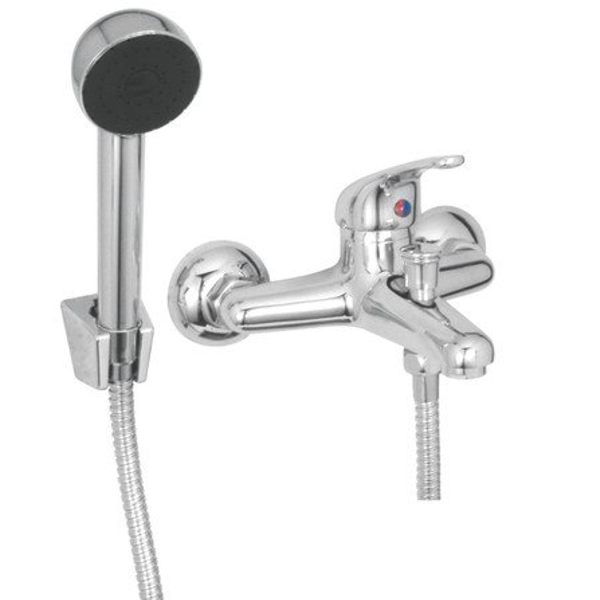 - Set bain-douche complet avec bec de bain, douchette, flexible de douche, raccords en S et rosaces pour une solution prête à l’emploi.