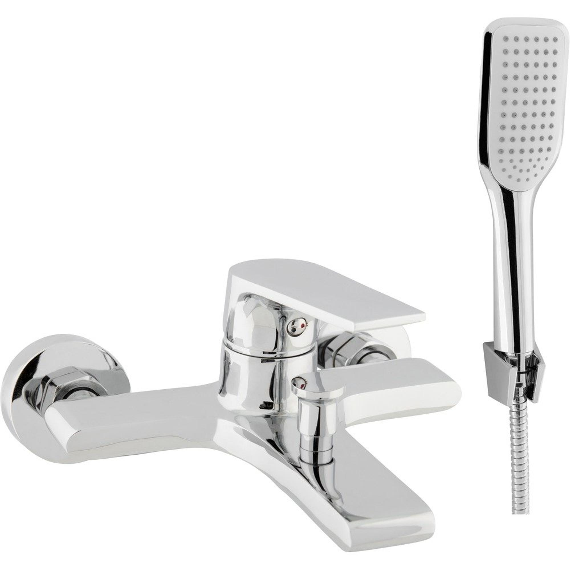 Go by Van Marcke Mélangeur baignoire monocommande complet avec douchette à main entraxe 15 cm disques céramiques inclus rosaces et raccords chrome
