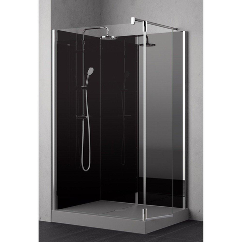 Nemo Stock Vidrio ensemble de douche à l'italienne complet – 120x90x195cm – avec paroi latérale 37cm – avec garniture - paroi arrière noire - receveur de douche gris – chrome