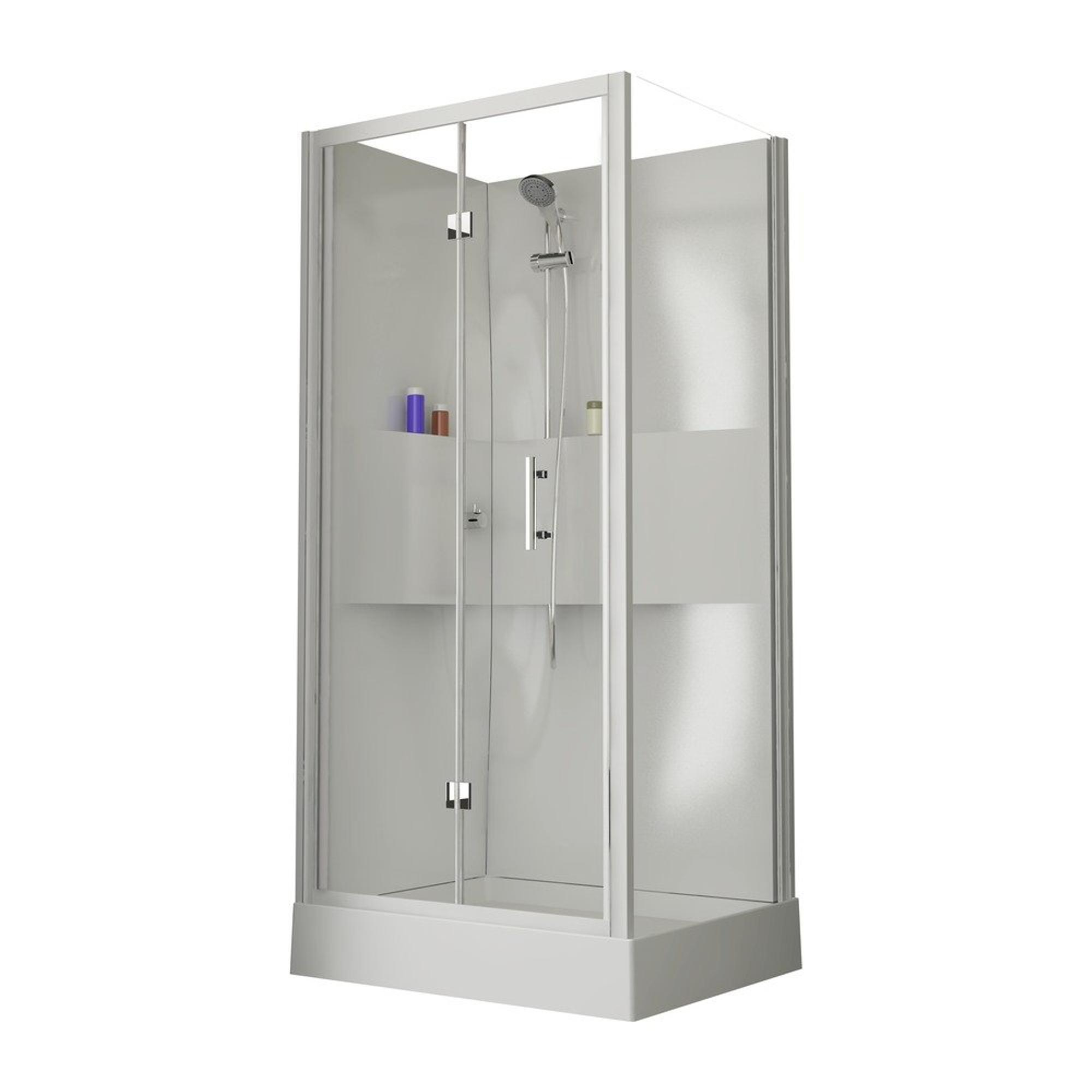 - Cabine de douche rectangulaire de 100x80 cm, idéale pour les petites salles de bains et les installations en angle.