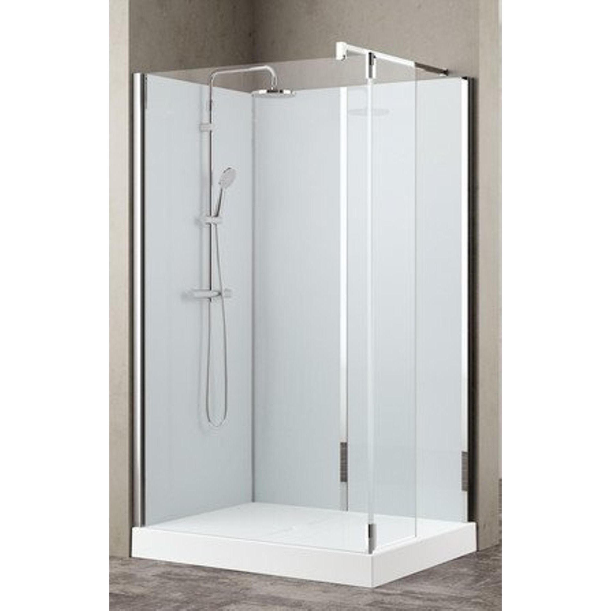 Nemo Stock Vidrio douche à l'italienne complète – 120x90x195cm – avec paroi latérale 37cm – avec garniture - paroi arrière blanche - receveur de douche blanc – chrome