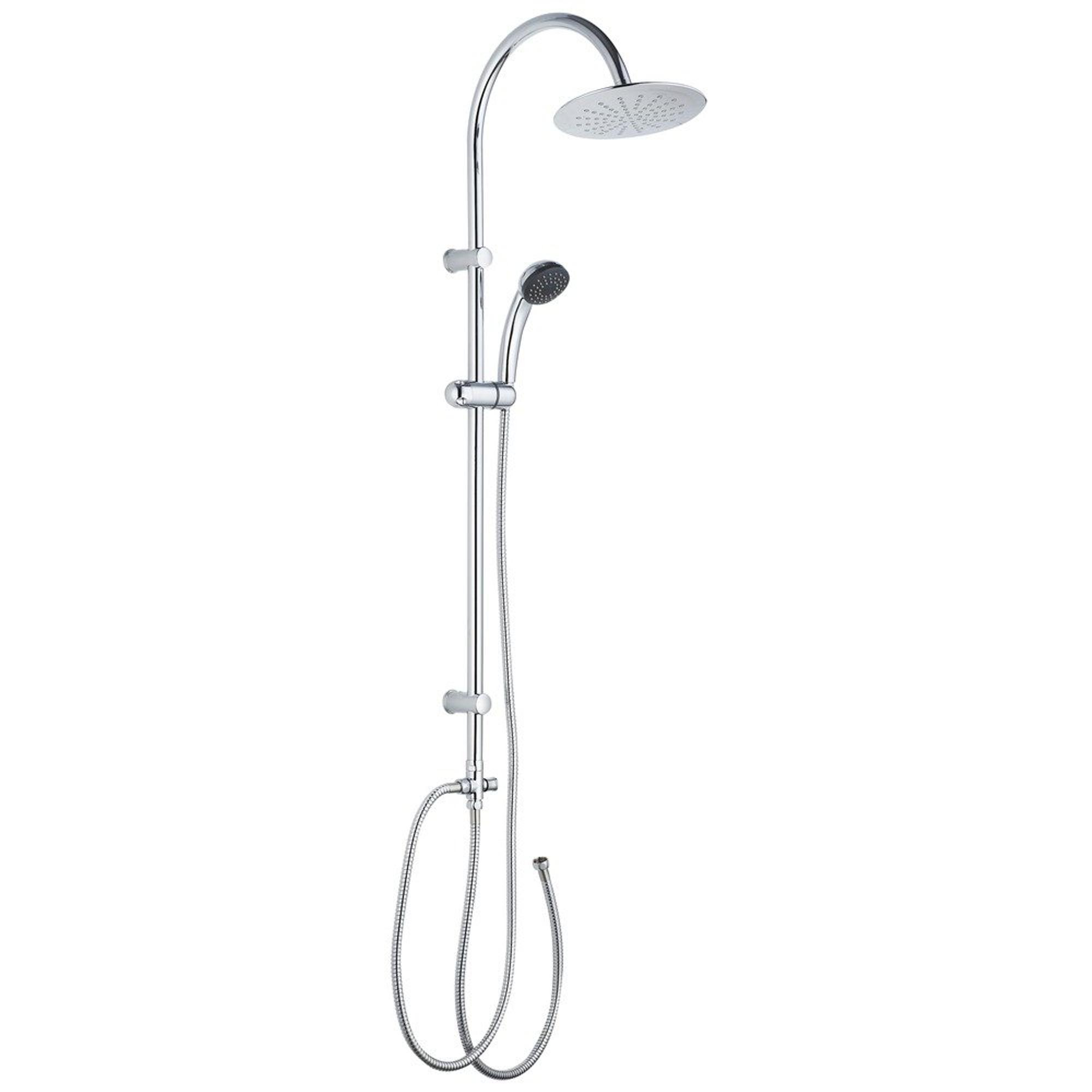 Avec cette colonne de douche complète, vous créez en une seule fois une expérience de douche confortable et moderne, sans que votre salle de bains ne doive subir une grande rénovation. Grâce à la combinaison de douche de tête et de douchette, il s’agit d’un ensemble idéal pour les salles de bains familiales très fréquentées, les petites salles de bains urbaines ET pour ceux qui souhaitent transformer leur douche existante en une expérience de douche pluie plus luxueuse. Les formes fines et rondes et la couleur chrome s’accordent parfaitement avec la plupart des robinets et accessoires de douche, ce qui vous permet de conserver facilement un aspect calme et intemporel dans votre espace douche. Comme tout est rassemblé sur une barre de douche métallique, vous disposez d’une solution claire et pratique : de la douche de tête à la douchette et au flexible de douche. Vous profitez ainsi chaque jour d’une généreuse douche pluie tout en bénéficiant de la flexibilité d’une douchette, par exemple pour rincer rapidement vos cheveux, rincer la paroi de douche ou doucher facilement les enfants.