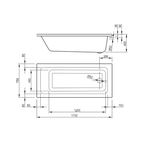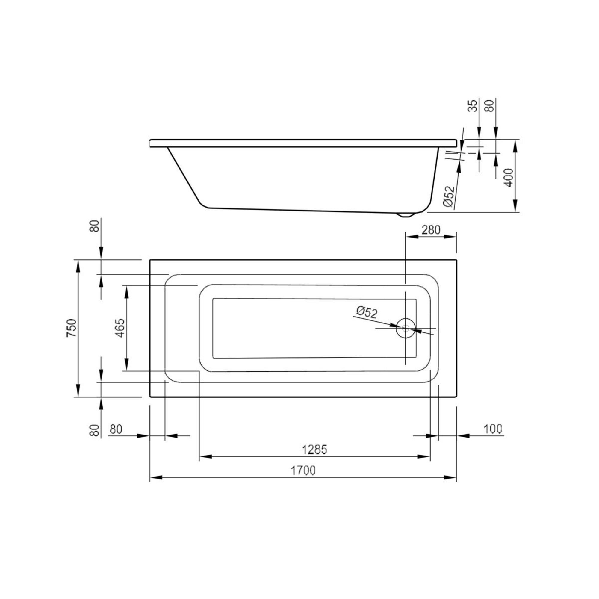 - Baignoire à encastrer spacieuse de 170x75x40 cm, idéale pour la plupart des salles de bains