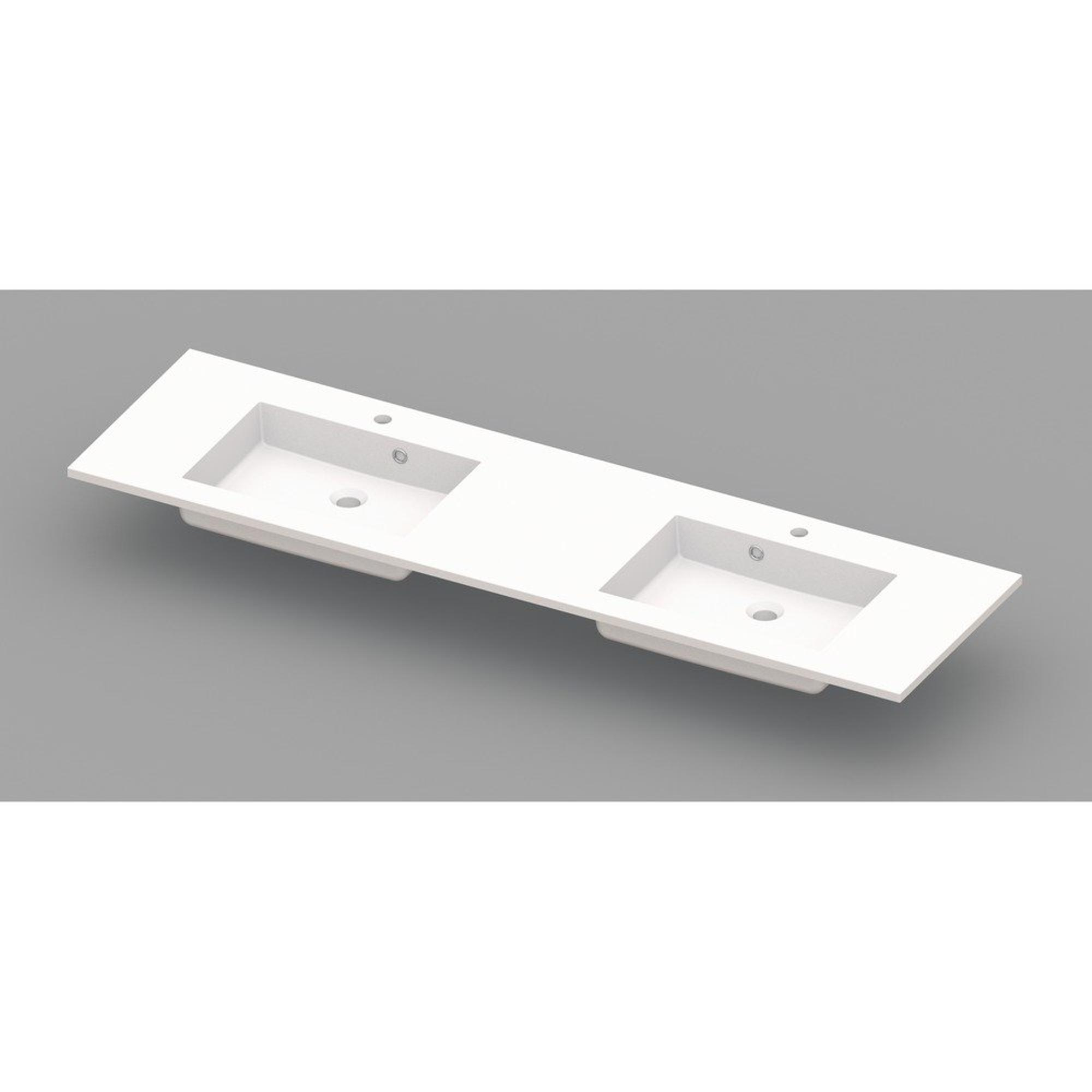 Nemo Spring Coste plan-vasque 1800 x 500 x 200 mm avec 2 orifices de vidage D 45 mm 2 trous de robinet avec trop-pleins marbre de synthèse blanc