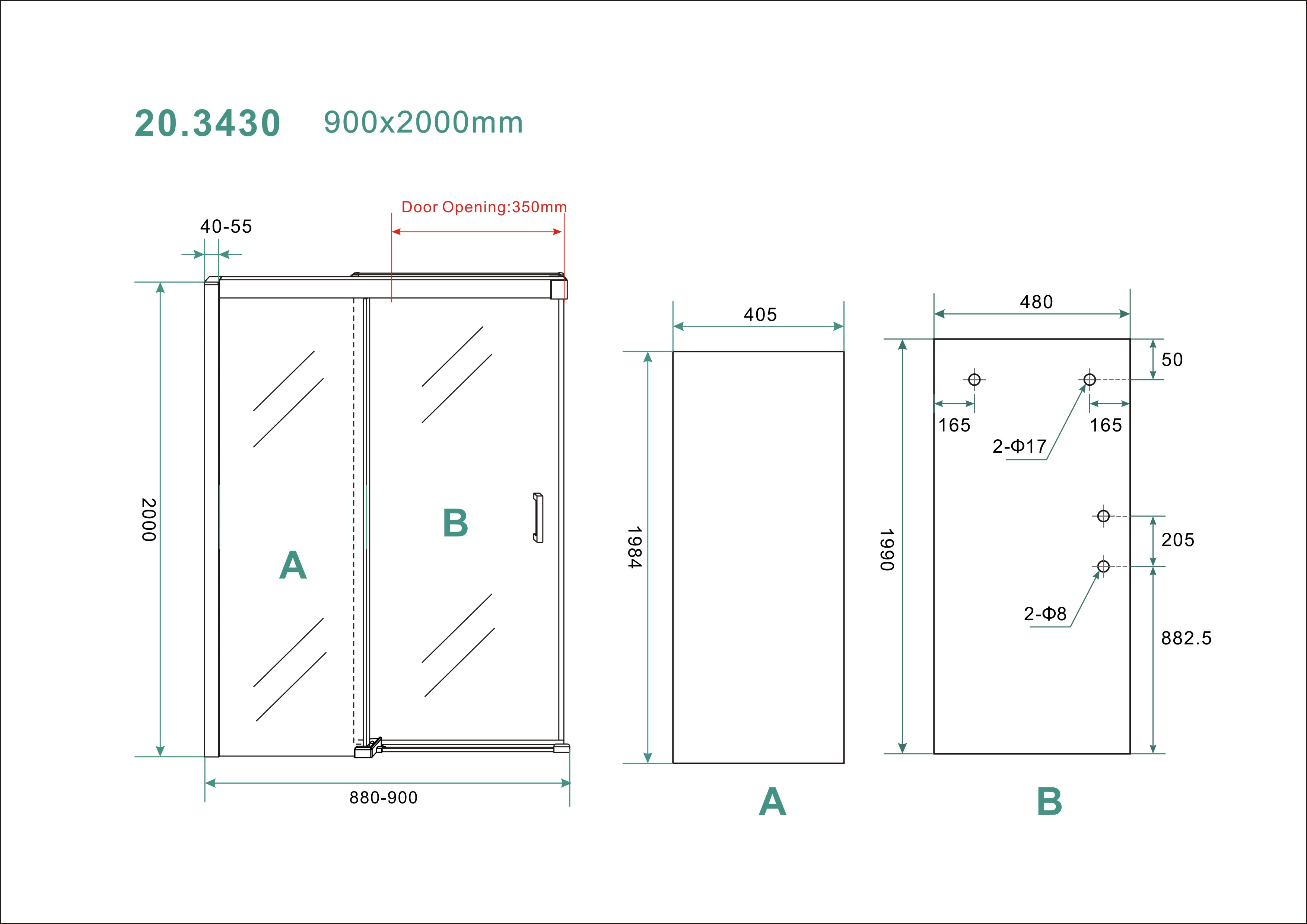 - Dimensions : 900 x 2000 mm – adapté aux niches standard