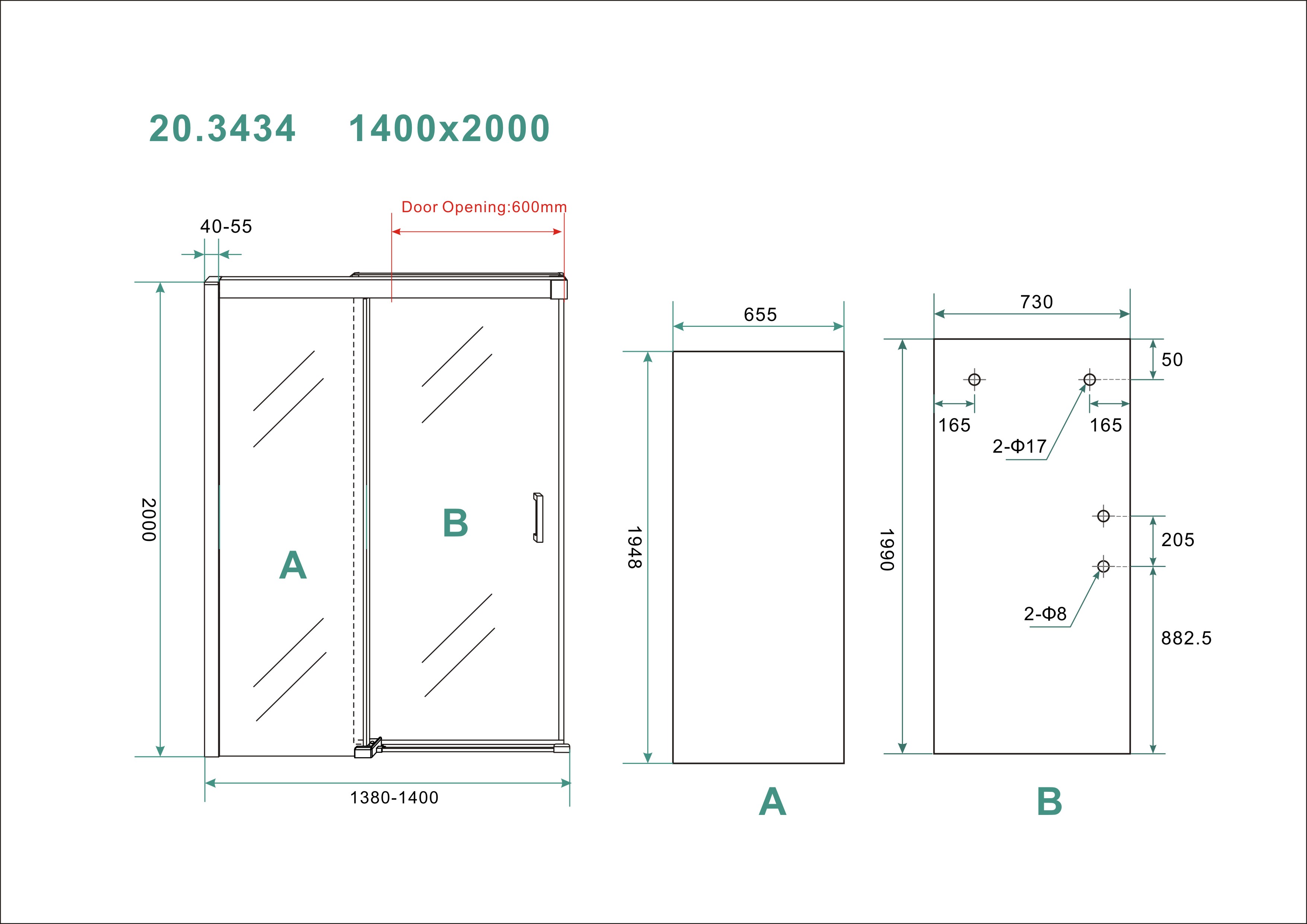 - Dimensions : 1400 x 2000 mm, adapté pour installation en niche