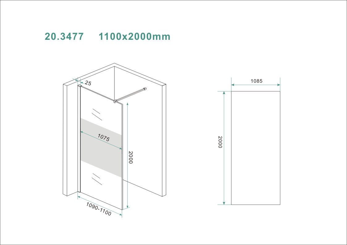 Wiesbaden Slim paroi de douche en verre 1100 x 2000 x 8 mm en verre clair nano avec bandeau en verre opale