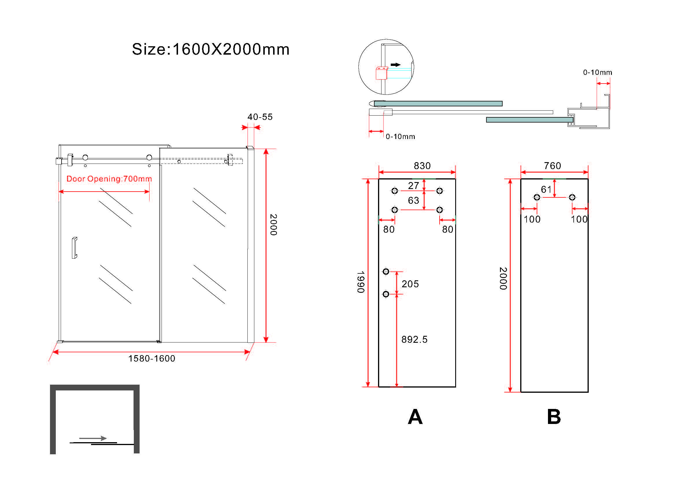 - Dimensions : 1600 x 2000 mm – adapté aux niches et panneaux latéraux