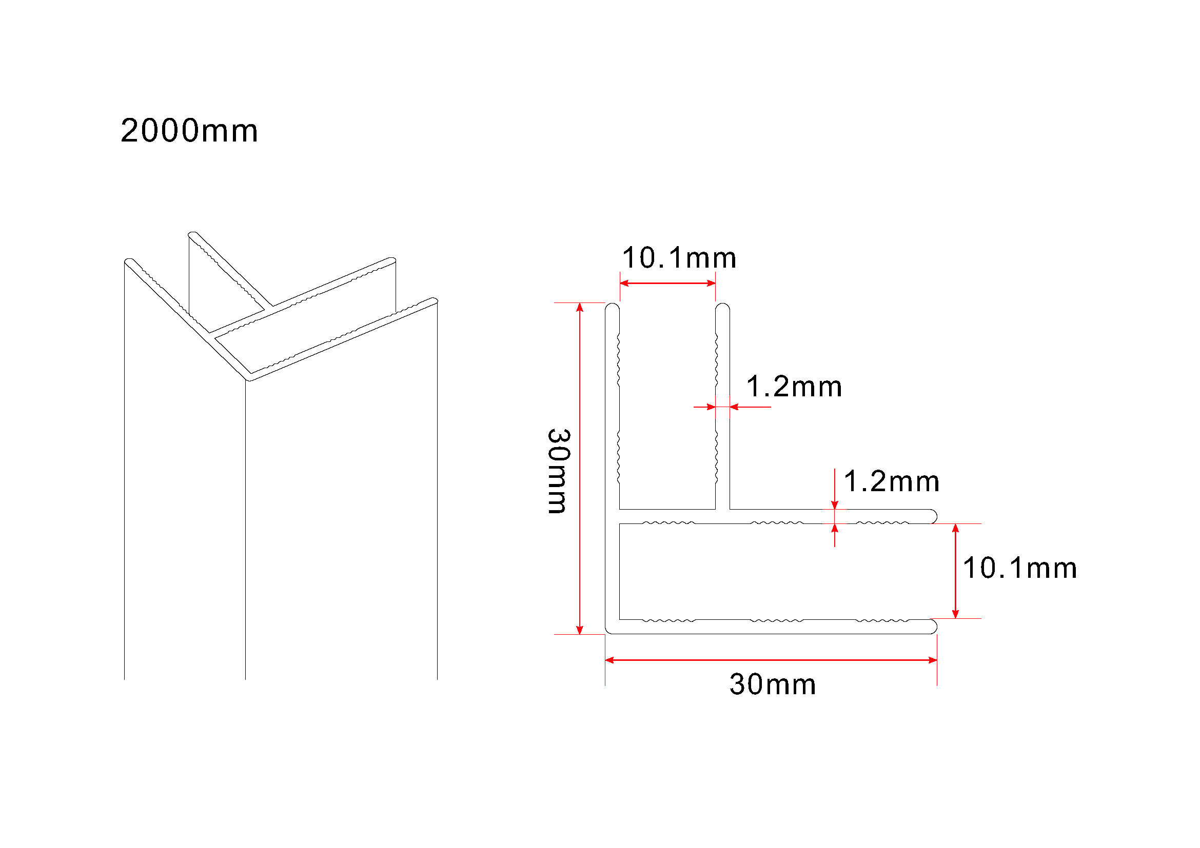 - Longueur de 2000 mm et largeur de 10 mm pour une connexion d'angle solide