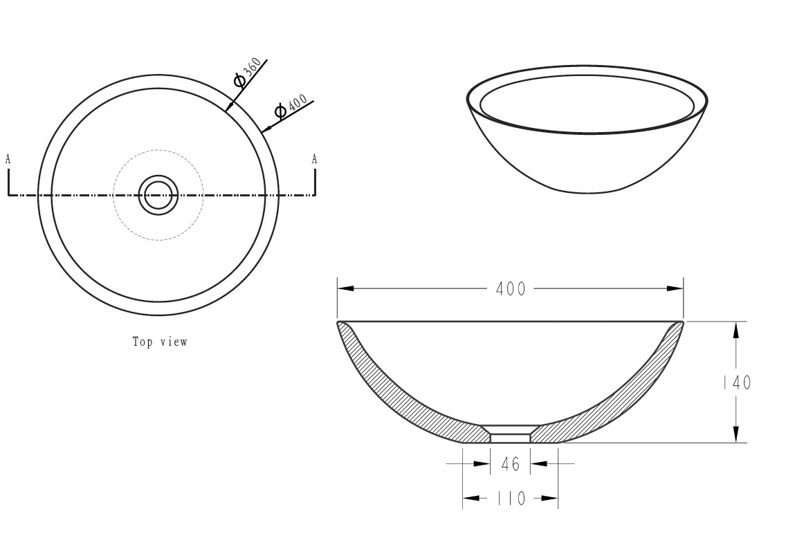 - Vasque posée ronde en pierre dure avec un diamètre de 40 cm et une hauteur de 14 cm