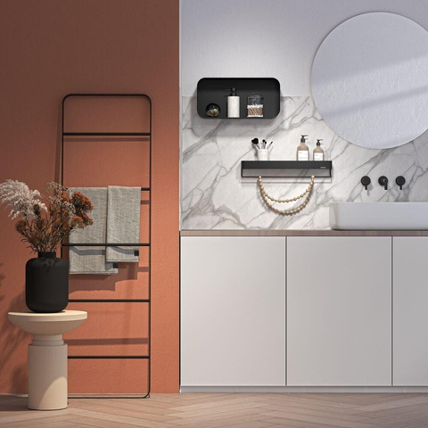 Avec une hauteur d’environ 50 cm et une profondeur de 12 cm, ce grand cube mural offre un espace de rangement étonnamment généreux, sans empiéter profondément dans la pièce. Cela le rend particulièrement adapté aux petites salles de bains, aux couloirs étroits ou au-dessus d’un meuble-lavabo. Vous y rangez de manière ordonnée les objets utilisés au quotidien, tout en les gardant à portée de main. Comme le cube mural est suspendu, vous pouvez nettoyer facilement en dessous et garder votre salle de bains hygiénique et bien rangée. Une solution pratique si vous souhaitez créer plus d’espace sans devoir rénover.Métal durable et montage simple