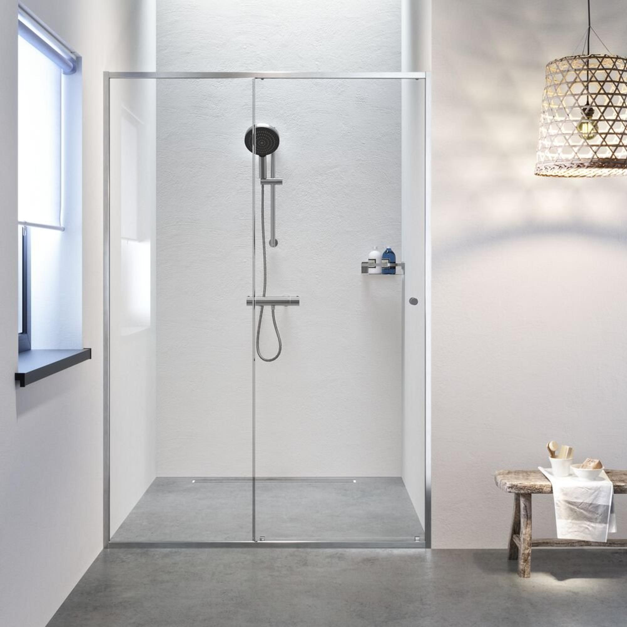 Sealskin Contour porte coulissante pour niche 120 cm, 200 cm de haut, acier inoxydable, verre de sécurité clair 6 mm