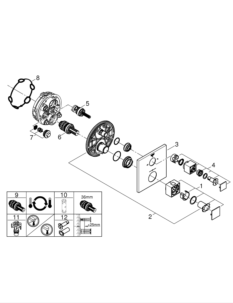 GROHE Grohtherm cube Kit de garniture pour mitigeur thermostatique encastré avec inverseur pour douche et baignoire chrome