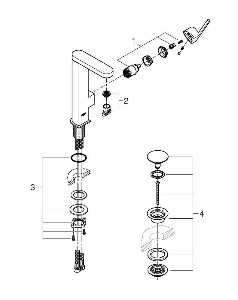 GROHE Plus robinet de lavabo économique L-size avec corps lisse et vidage push open chromé