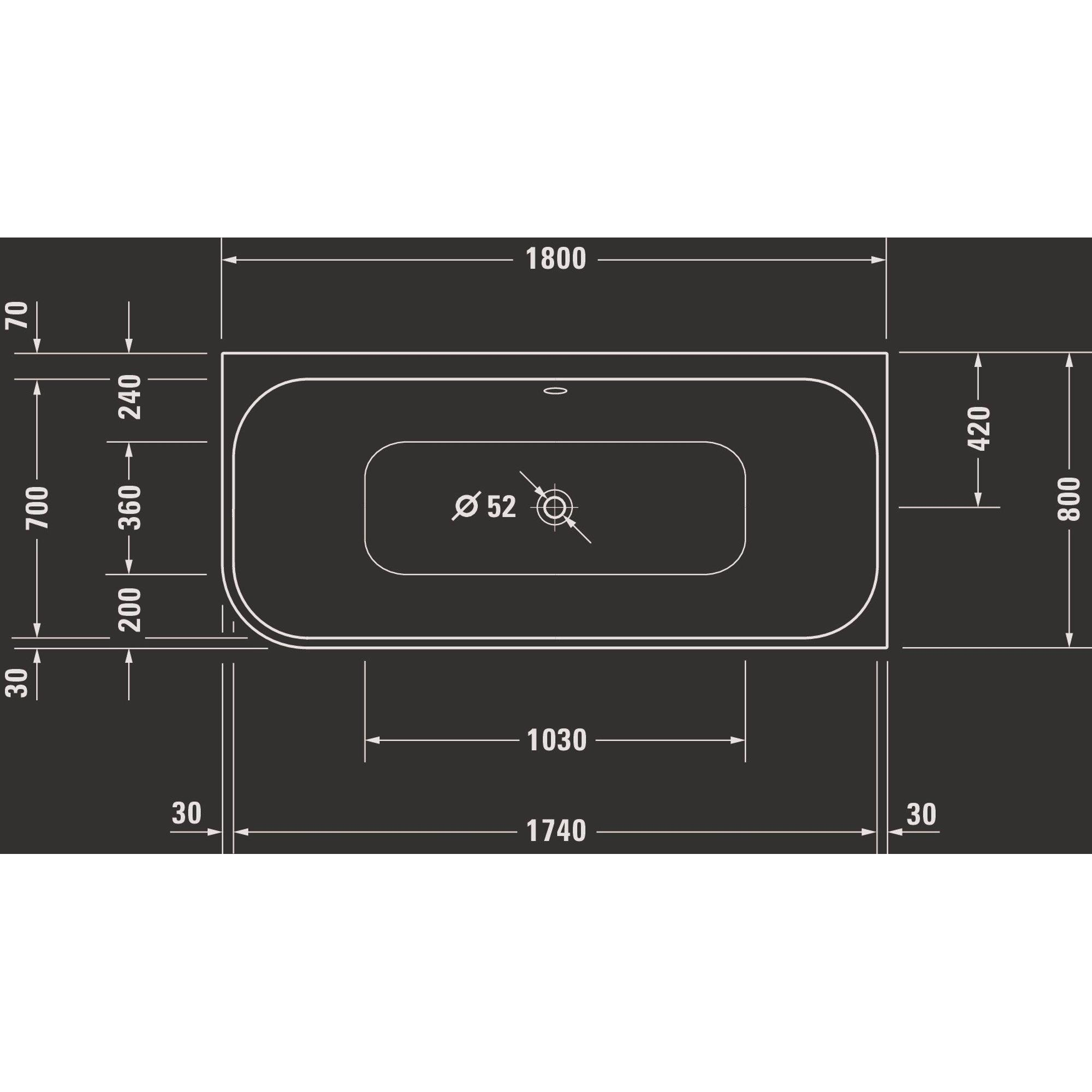 Duravit Happy d.2 baignoire semi-autoportante 180x80cm blanc mat anthracite