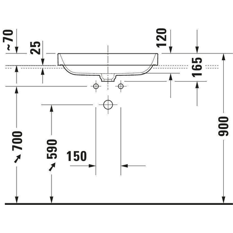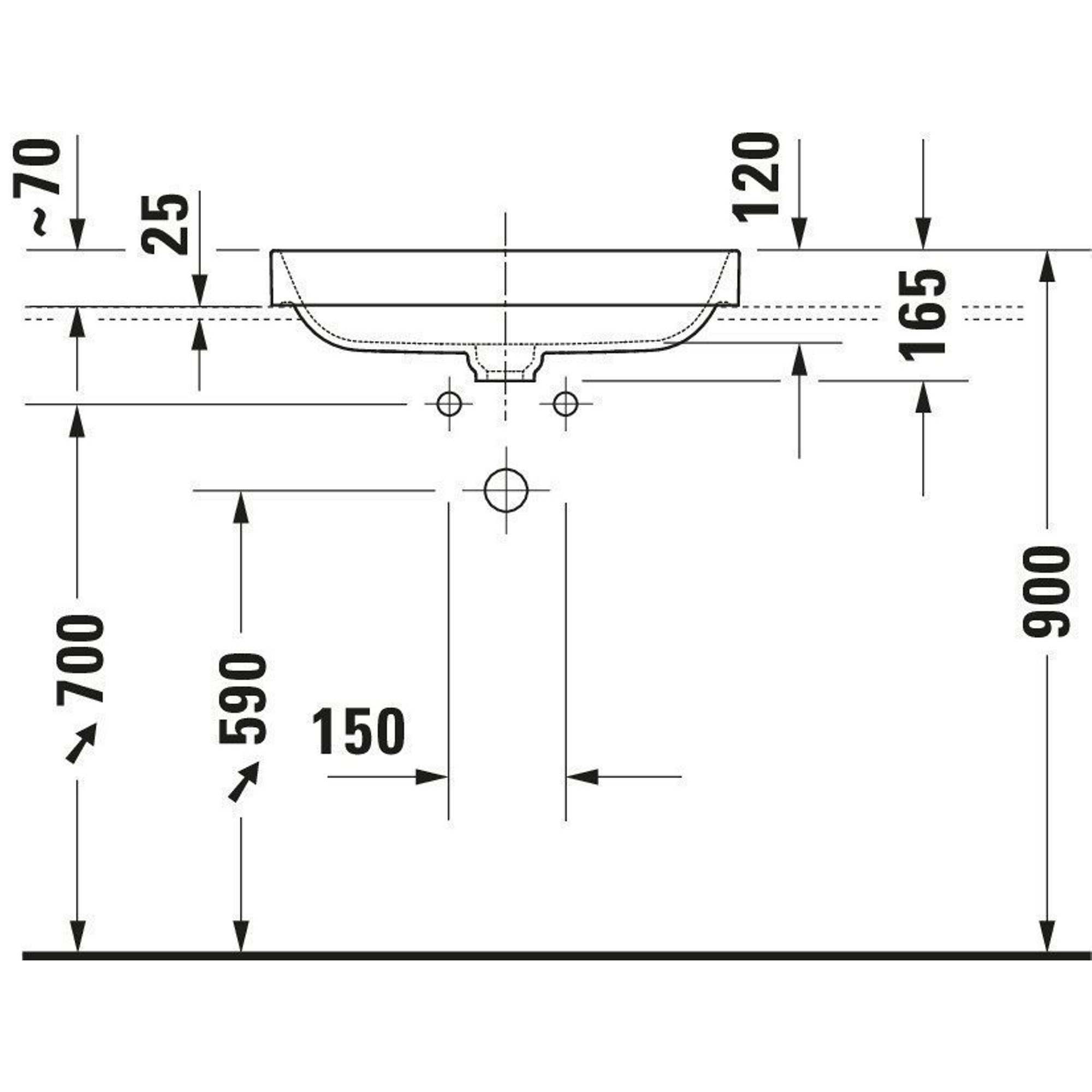 - Sans trou de robinetterie : à combiner au choix avec un robinet haut sur plan ou un mitigeur de lavabo encastré.
