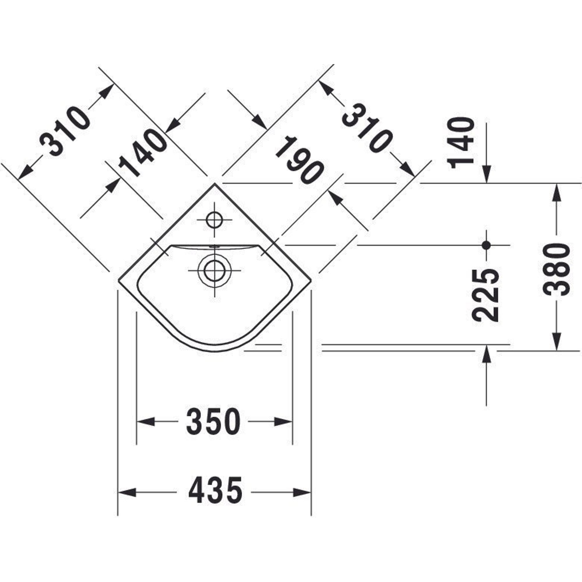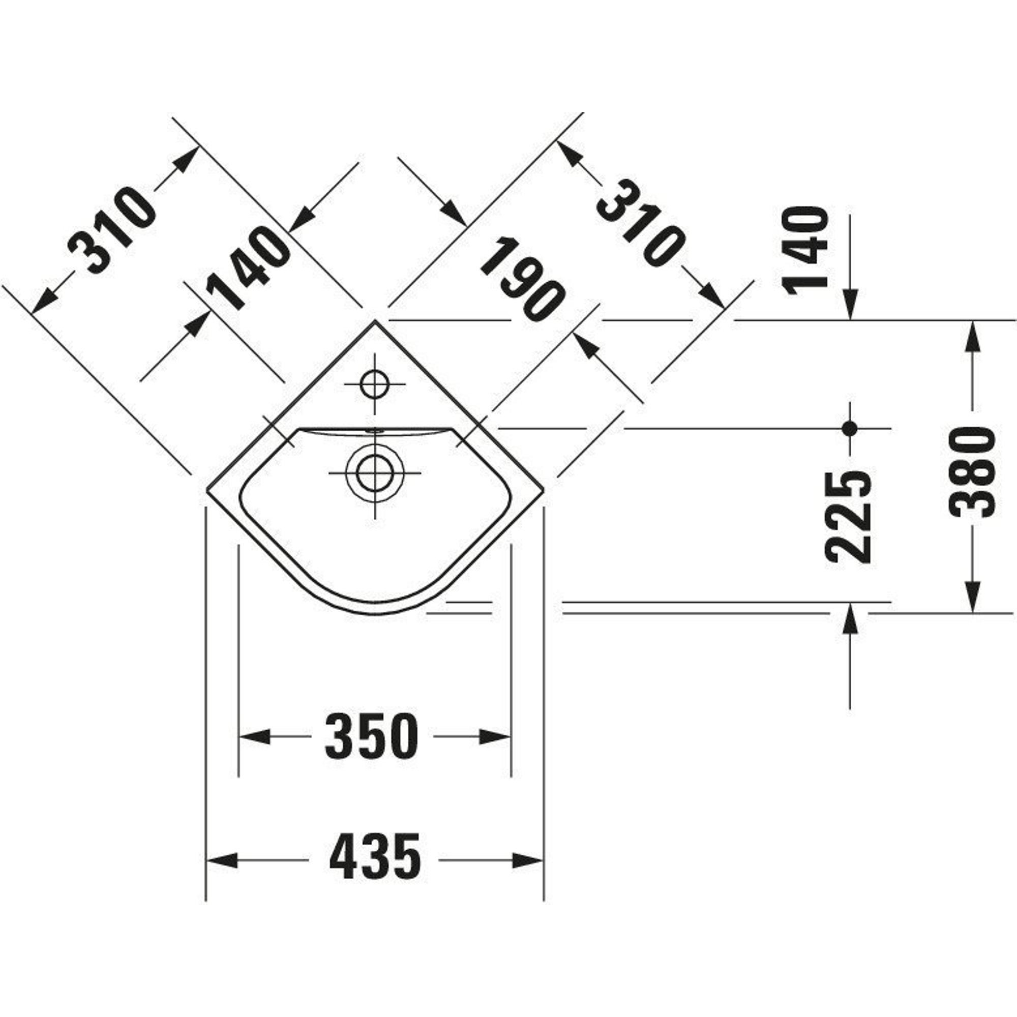 Duravit ME by Starck lave-mains d’angle 1 trou de robinet avec trop-plein 43,5x38cm blanc mat 722433200