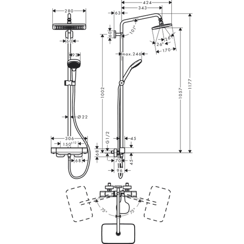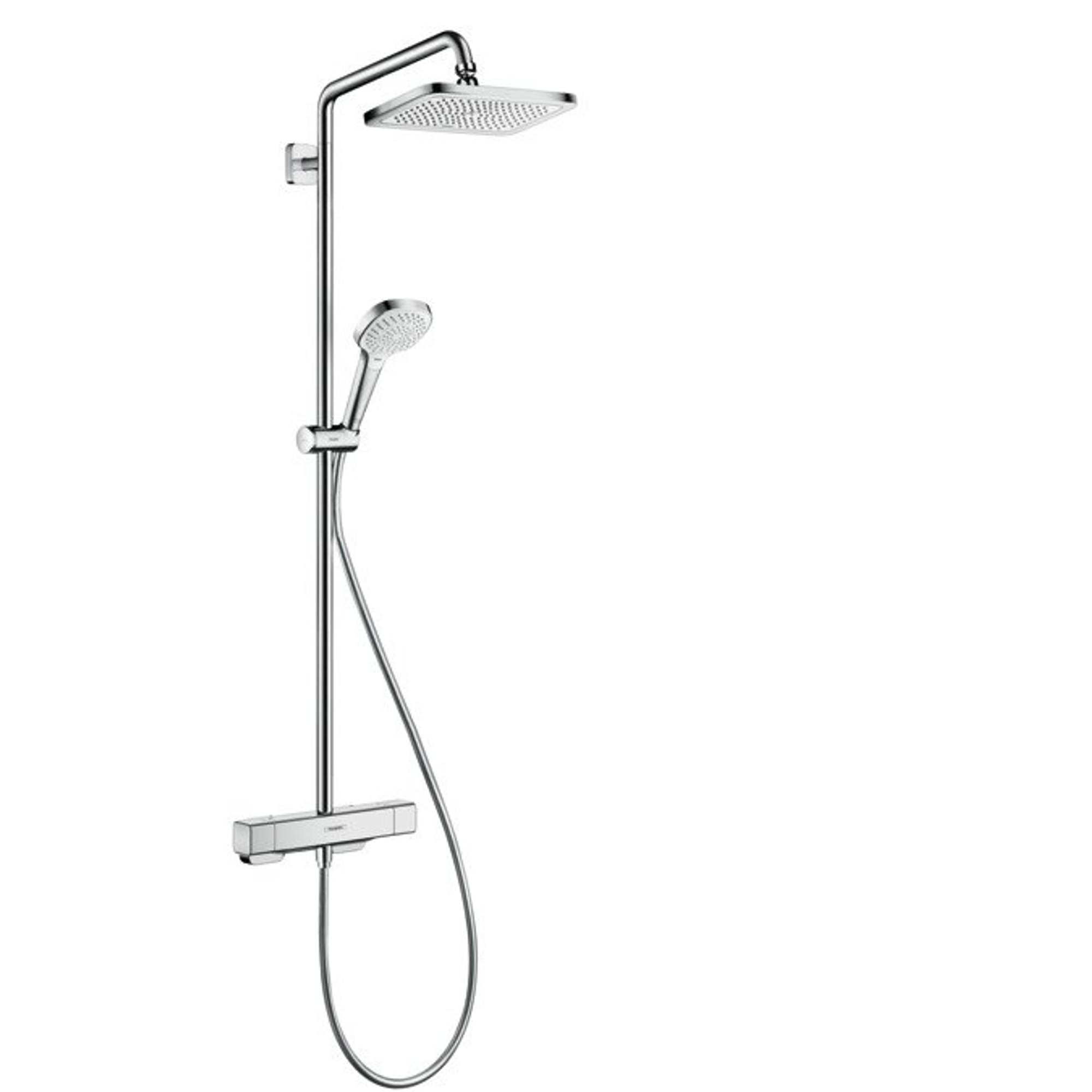 Hansgrohe Croma E280 showerpipe: mit mitigeur thermostatique m. 1jet pomme de tête m. 3jet douchette multi et flexible de douche 160cm chrome