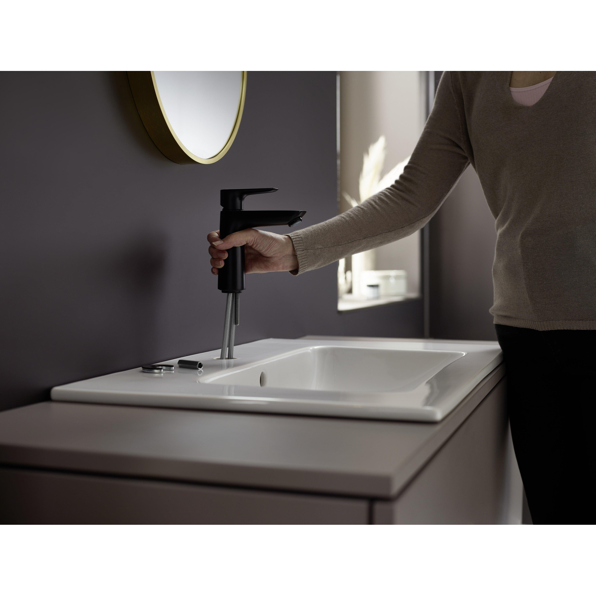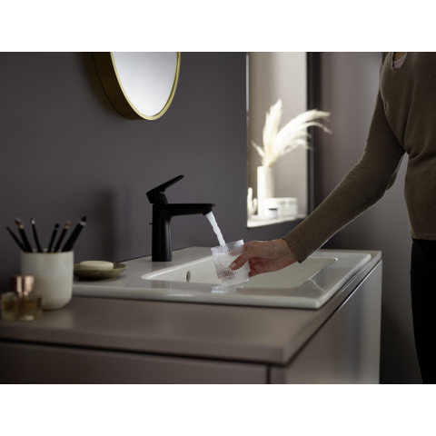 Le robinet est conçu en tenant compte de la facilité d'utilisation. La grande zone de confort de 110 mm entre le bec et le lavabo offre un espace supplémentaire pour vos mains et rend le lavage plus confortable. Grâce au système de mélange céramique à faible friction, vous réglez facilement la température et le débit d'eau. Le set de vidage à tirette fourni est facile à manipuler d'une seule main, ce qui augmente la fonctionnalité. De plus, la technologie AirPower enrichit l'eau en air, ce qui rend le jet plus plein et plus doux au toucher. Cela rend l'utilisation non seulement plus agréable, mais évite également les éclaboussures.