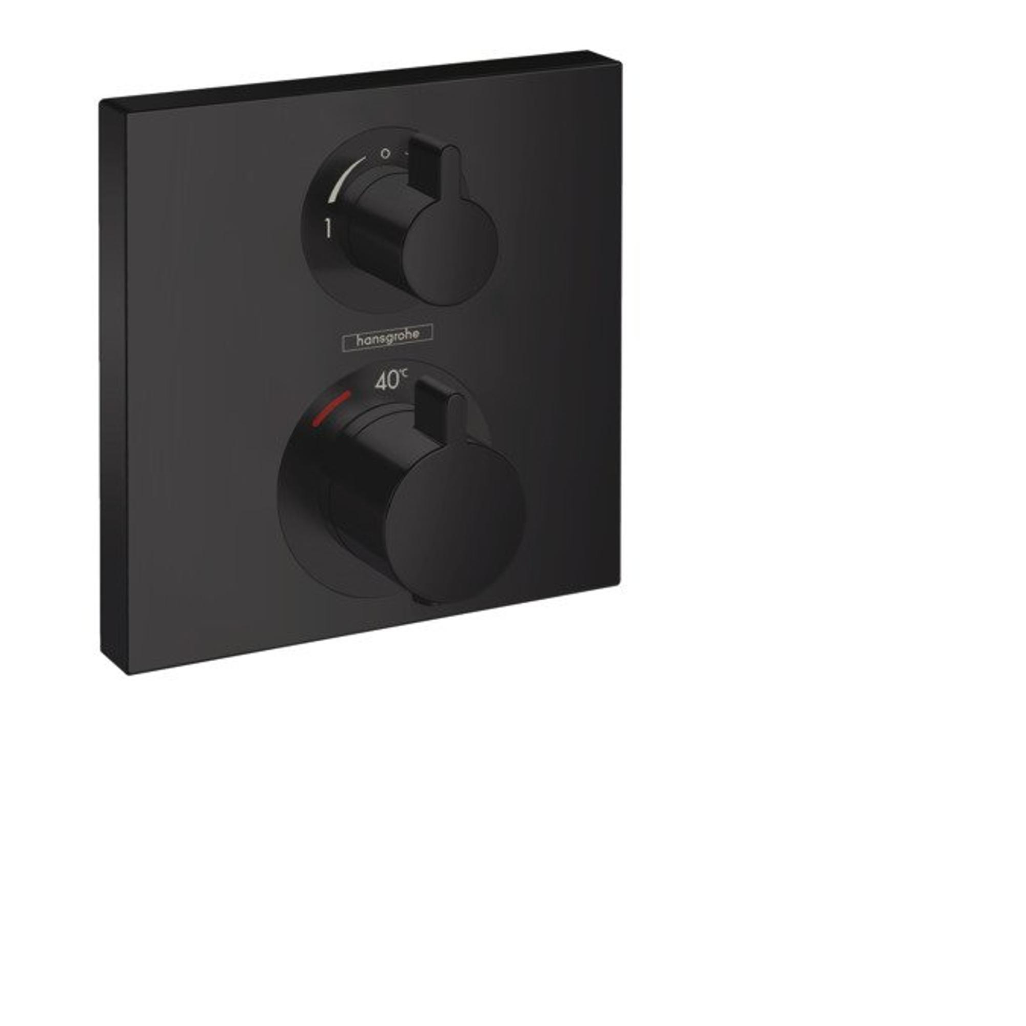 Le thermostat encastré Ecostat Square pour 2 fonctions en mat noir de hansgrohe se caractérise par sa forme, sa fonctionnalité et sa couleur. Le design intemporel adopte un langage de forme angulaire et minimaliste. Avec sa finition couleur durable en mat noir, le thermostat est une déclaration dans la douche, qui s’intègre très bien comme contraste expressif ou complément parfait dans la salle de bains moderne. Les deux fonctions - par exemple la douche de tête ou la douchette - et le réglage de la température de l’eau sont commandés par deux poignées rotatives ergonomiques distinctes, que vous pouvez actionner même avec les mains mouillées. Avantage d’une installation encastrée : plus d’espace pour le design, des fonctions pratiques et une liberté de mouvement sous la douche. Pour l’installation, le corps encastré hansgrohe iBox Universal est nécessaire (01800180). Conçu pour des débits élevés de 29 respectivement 26 l/min (à 3 bars), le thermostat de douche garantit un plaisir de douche exceptionnel.
