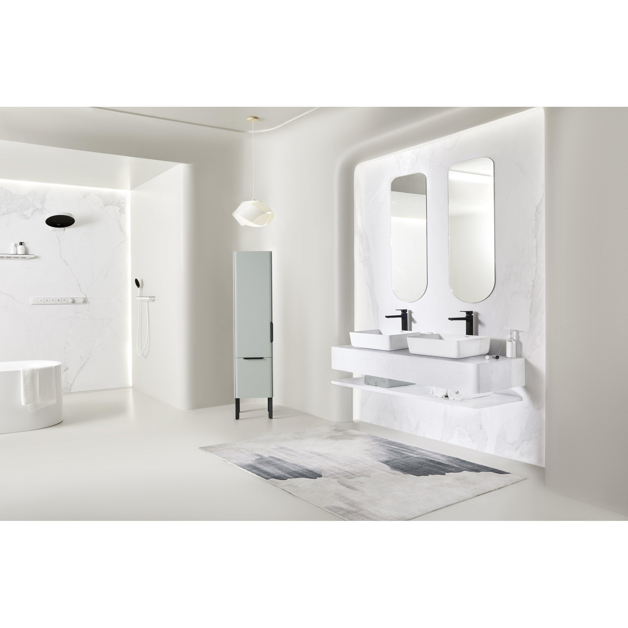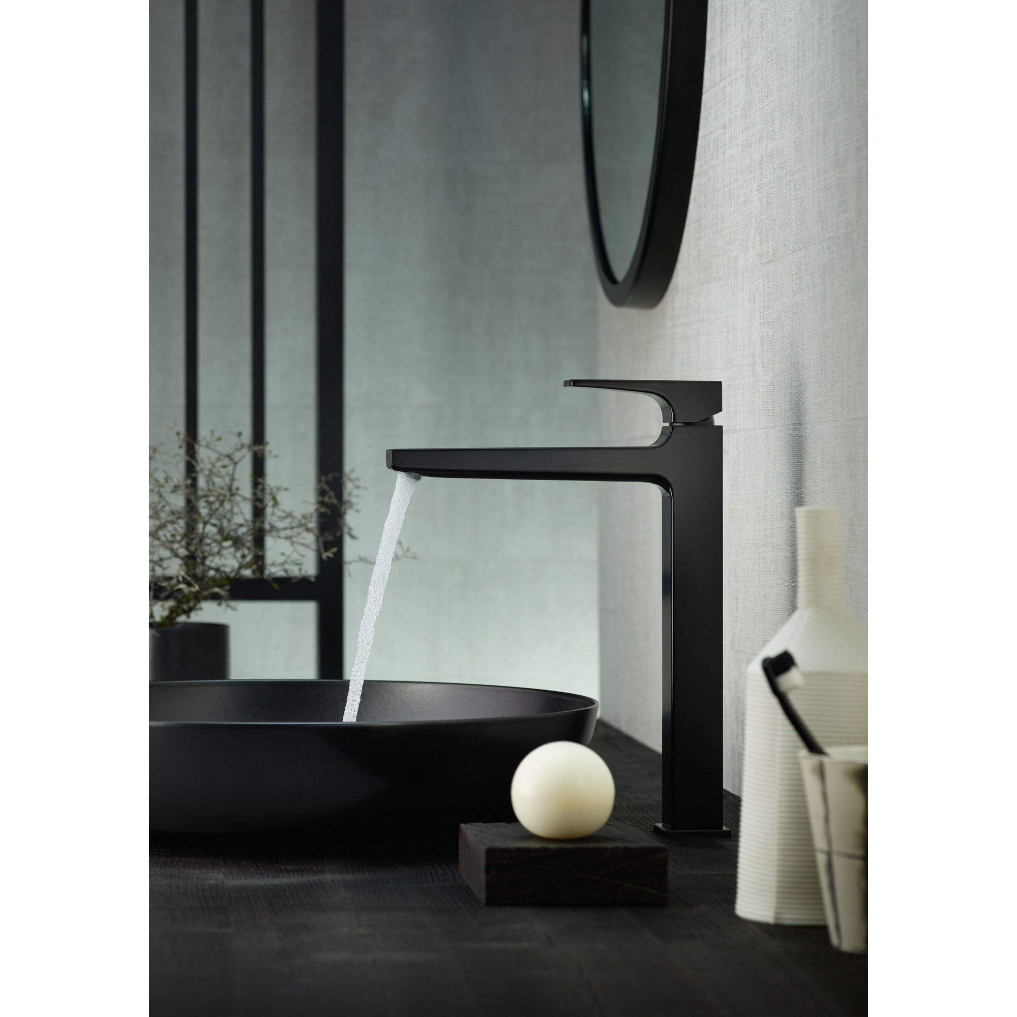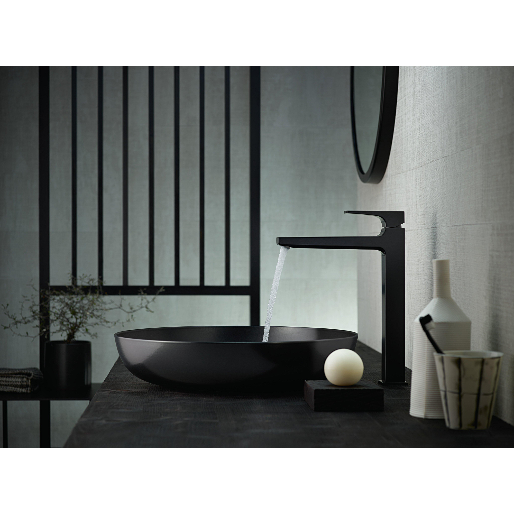 Ce mitigeur se distingue immédiatement par ses lignes géométriques épurées et sa couleur noir mat qui s'harmonise parfaitement avec les tendances modernes de la salle de bains. Le design minimaliste sans poignée visible à l'arrière offre une apparence calme et élégante. Avec ce robinet, vous donnez à votre salle de bains une touche exclusive à la fois intemporelle et tendance. Le contraste expressif du noir mat avec des matériaux clairs ou naturels en fait un véritable accroche-regard. Vous créez ainsi une salle de bains non seulement fonctionnelle, mais aussi un lieu dont vous êtes fier.