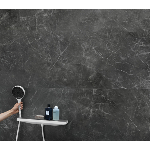 La combinaison du mat blanc avec une grande plaque de jets anthracite donne à cette douchette à main un aspect moderne et raffiné. Ce design s'intègre parfaitement aux dernières tendances de salle de bains et ajoute une élégance subtile à votre intérieur. La grande taille de la plaque de jets assure non seulement un aspect impressionnant, mais aussi une large distribution d'eau qui enveloppe doucement votre peau. Vous profitez ainsi non seulement d'une douche fonctionnelle, mais aussi d'une prouesse esthétique qui améliore votre salle de bains. Grâce à sa couleur intemporelle, cette douchette à main s'adapte à presque tous les styles, du moderne épuré au naturel chaleureux.
