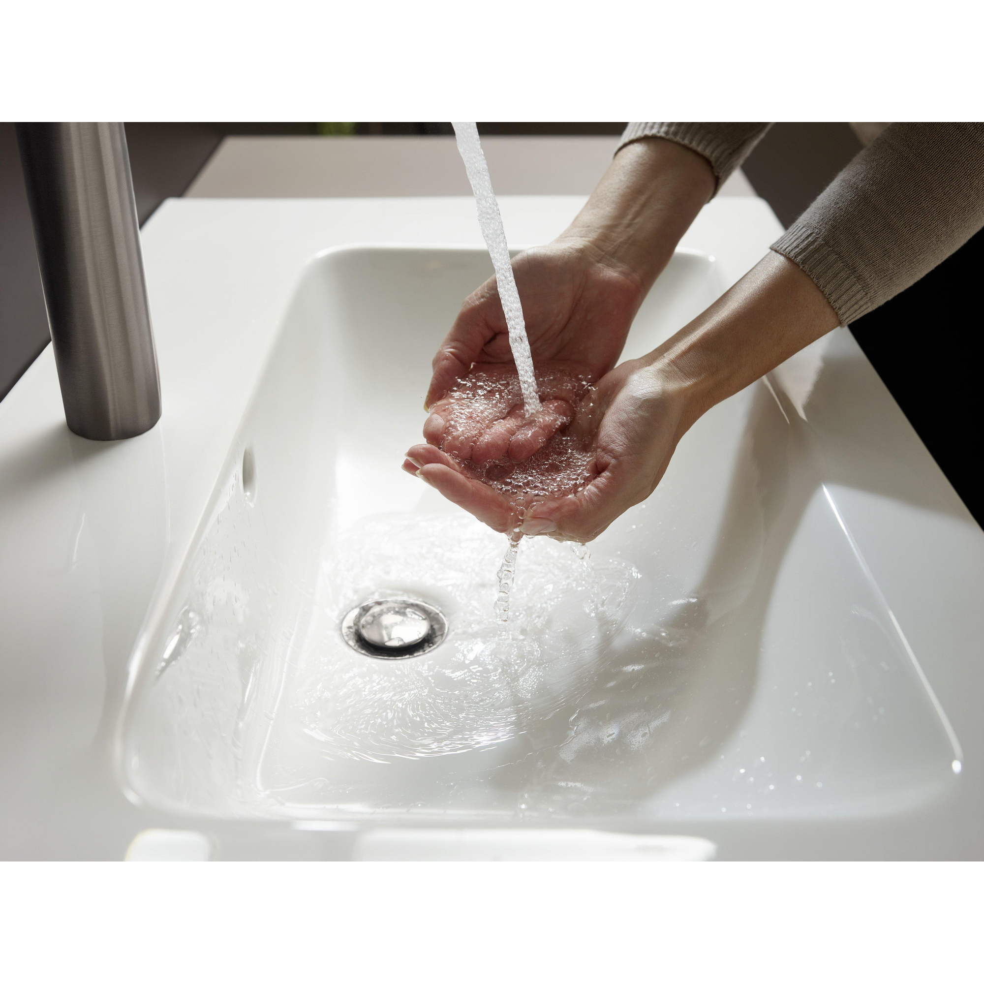 Avec une hauteur confortable de près de 30 cm, ce robinet offre un espace supplémentaire sous le bec, idéal pour laver les cheveux ou remplir de grands récipients. La commande est simple et intuitive grâce à la poignée plate et droite qui permet de régler rapidement le débit et la température de l’eau. De plus, la technologie EcoSmart intégrée permet d’économiser jusqu’à 5 litres d’eau par minute, sans compromettre le confort. Le set de vidage à tirette inclus facilite l’ouverture et la fermeture de la bonde. Ainsi, vous combinez facilement style, facilité d’utilisation et durabilité.