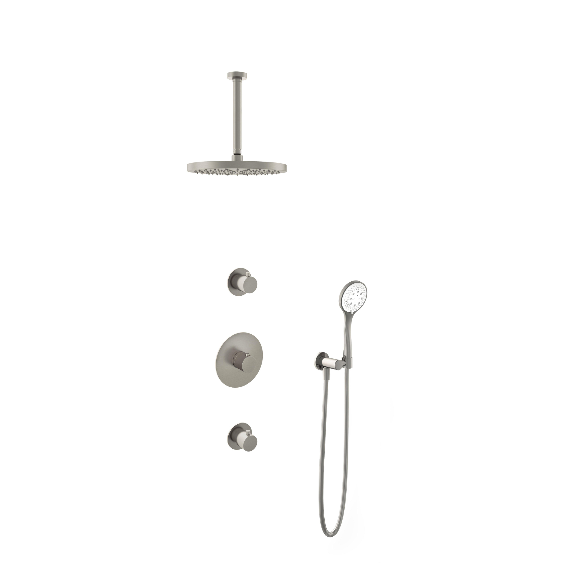 Hotbath Buddy IBS Ensemble de douche pluie - bras de plafond 30 cm - pomme de douche ronde 30 cm - douchette à main 3 jets - nickel brossé