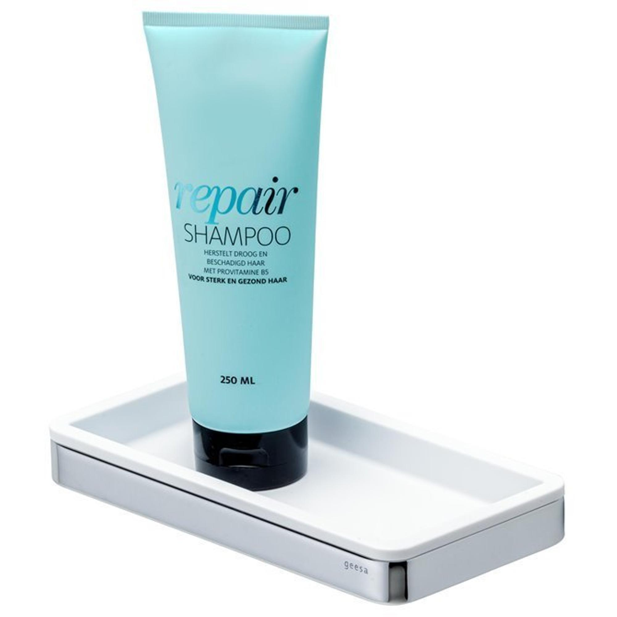 Avec cette étagère compacte, vous créez en une seule fois plus de calme et d’espace dans la salle de bains. Grâce à son format élancé, elle s’intègre sans effort à côté d’un lavabo, dans la douche ou au-dessus des toilettes, même dans les petites salles de bains ou un WC moderne avec peu d’espace mural. La combinaison du blanc avec le chrome s’accorde parfaitement avec les robinets et pommes de douche contemporains, tandis que les lignes épurées assurent une apparence calme et ordonnée. Idéale si vous souhaitez toujours avoir votre gel douche, savon ou accessoires préférés à portée de main sans que cela paraisse désordonné. Grâce aux détails bien pensés, comme la fente d’évacuation de l’eau et l’insert amovible, c’est un choix astucieux pour tous ceux qui attachent de l’importance au confort, au design et à l’aspect pratique dans la routine quotidienne de la salle de bains.