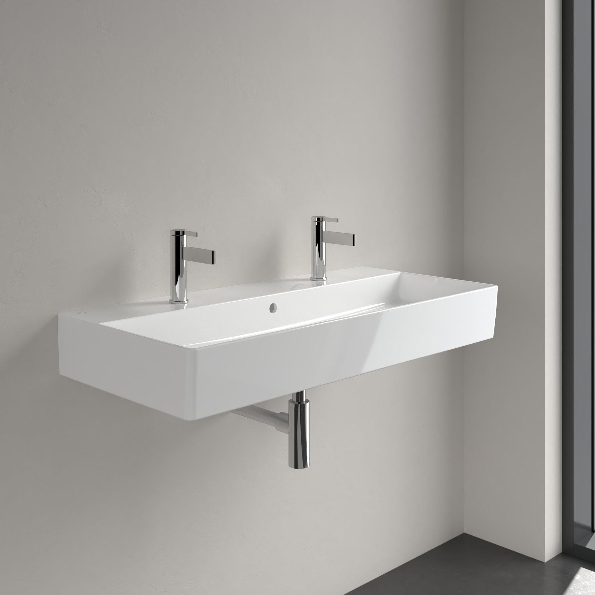 Villeroy & Boch Memento 2.0 lavabo - pour porte-serviettes 100x47cm - avec trop-plein 2 trous de robinet ceramic+ blanc