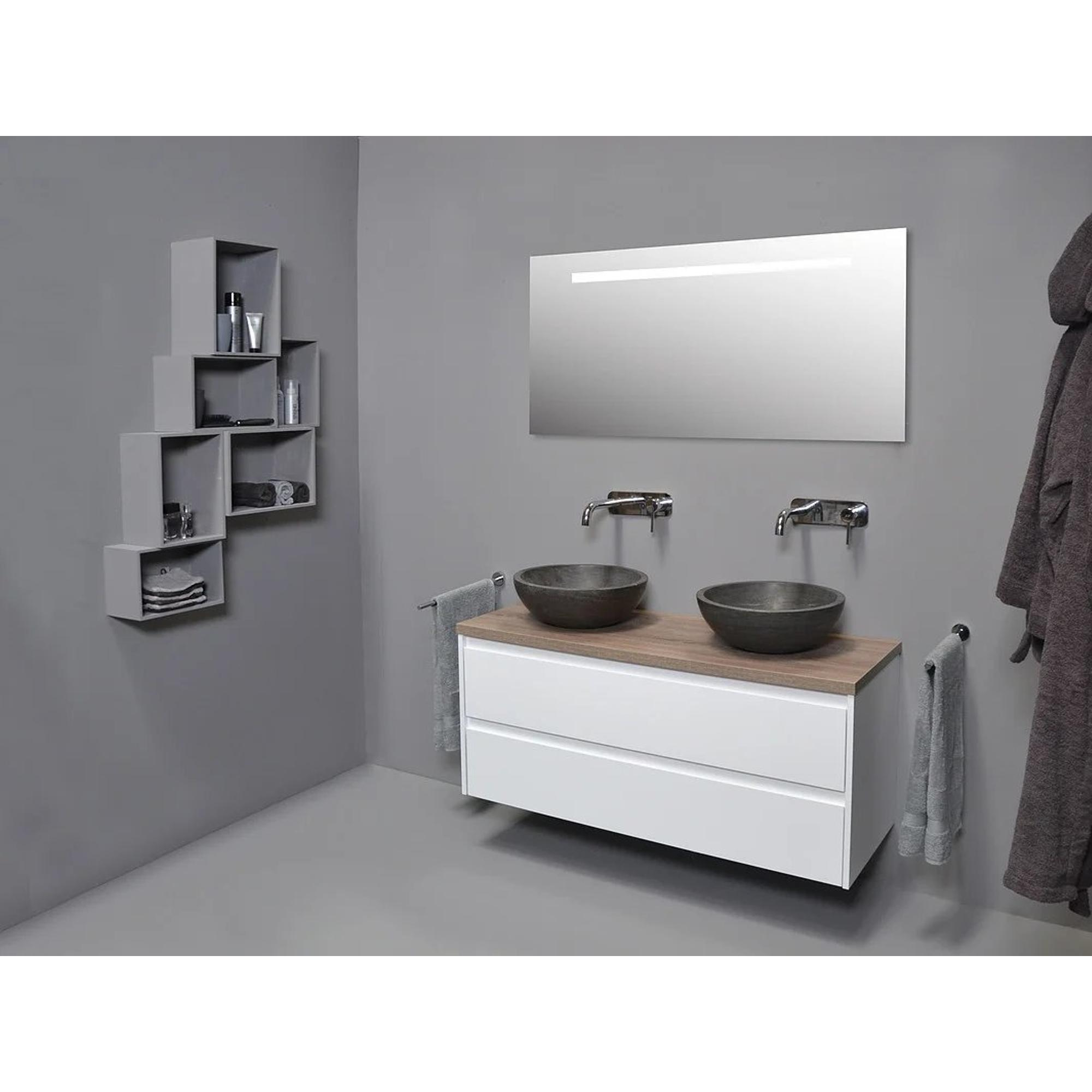 L’utilisation au quotidien a été pensée dans les moindres détails. Vous commandez l’éclairage LED facilement via un interrupteur à capteur pratique situé sur la partie inférieure du miroir. Vous n’avez donc pas besoin de chercher un interrupteur mural séparé : d’une simple pression, vous allumez ou éteignez l’éclairage ou ajustez l’intensité lumineuse. De plus, le miroir est conçu pour une utilisation dans la salle de bains, avec un degré de protection adapté contre l’humidité (indice IP, selon la version), de sorte que vous pouvez le placer en toute sérénité à proximité de la vasque. L’ensemble n’est donc pas seulement confortable et pratique, mais constitue également une solution sûre pour les zones humides.Caractéristiques :