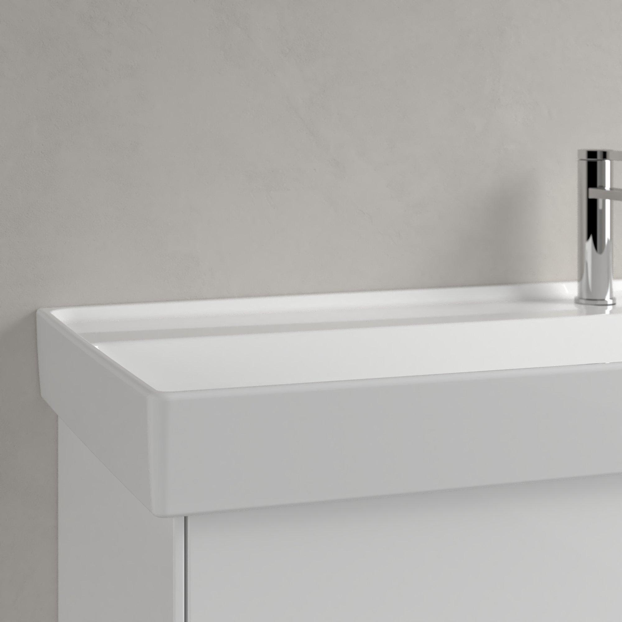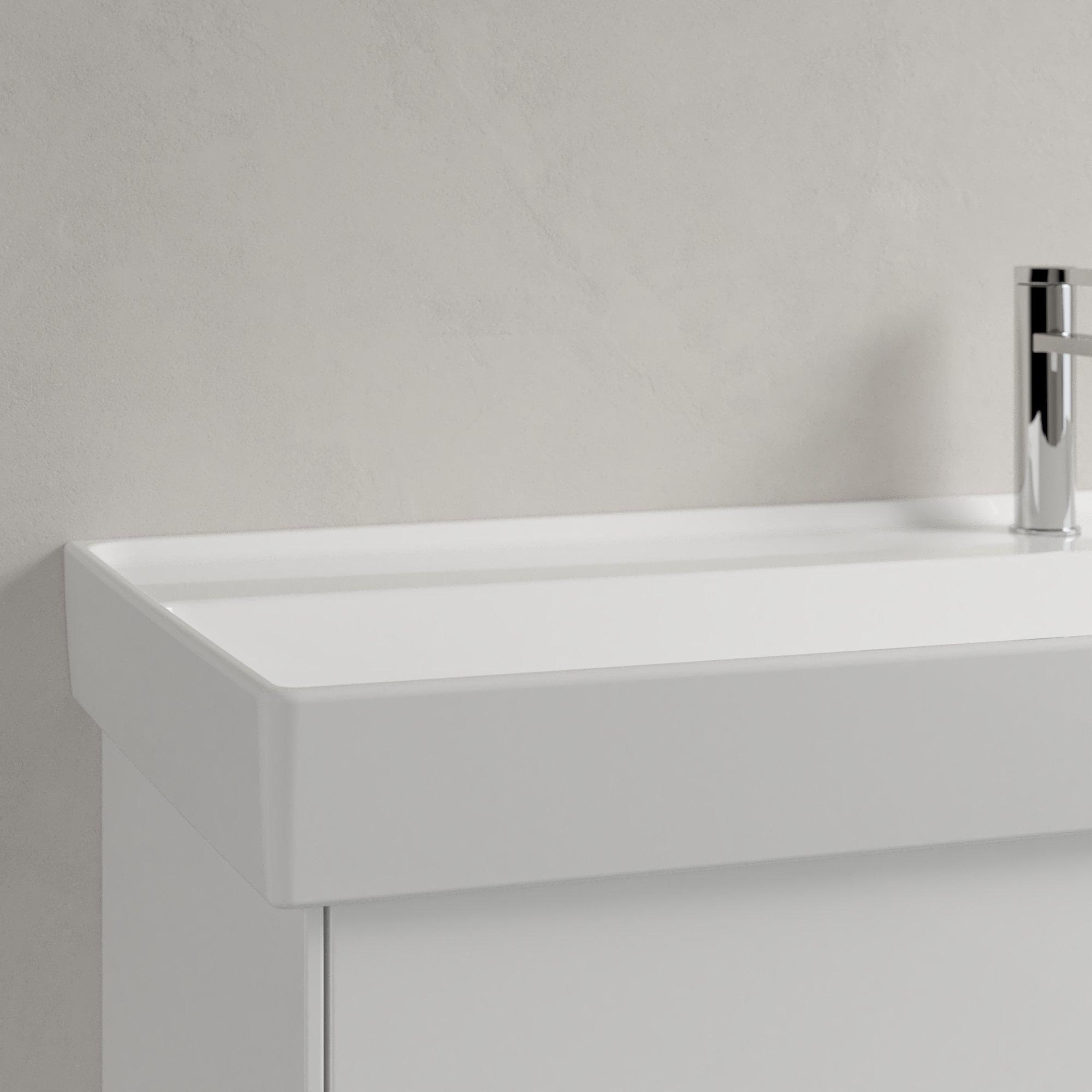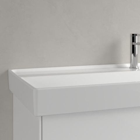 Ce lavabo combine un bord élégant et fin avec la robustesse d’une céramique avancée. Grâce à l’utilisation du TitanCeram de haute qualité, les parois sont façonnées de manière extrêmement fine, sans que vous ayez à sacrifier la solidité ou la stabilité. Cela donne une apparence légère, presque flottante, à votre meuble de salle de bains, ce qui s’intègre particulièrement bien dans les salles de bains modernes et design. Les formes précises et filigranes créent un look raffiné qui exprime immédiatement la qualité. Parallèlement, l’ensemble paraît robuste et fiable, vous permettant de l’utiliser intensivement sans souci dans un foyer animé. Vous profitez ainsi d’un design élégant qui reste beau également sur le long terme.