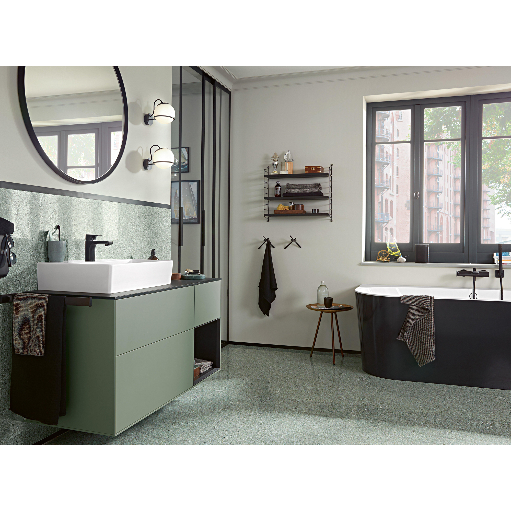 Ce lavabo est fabriqué en TitanCeram, un matériau céramique spécialement développé qui combine la robustesse de la céramique avec la possibilité de réaliser des formes extrêmement fines et épurées. Vous le remarquez immédiatement : le lavabo paraît solide et robuste, il résiste bien aux chocs et aux variations de température et conserve sa forme même en cas d’utilisation intensive. La surface lisse n’est pas seulement agréable à nettoyer, mais aussi hygiénique à l’usage. Grâce à la position fixe de l’unique trou de robinet, vous pouvez facilement choisir un mitigeur monocommande assorti, ce qui contribue à une apparence calme et uniforme de la pièce.
