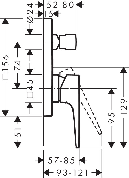 Hansgrohe Metropol élément de finition pour robinet de baignoire encastré avec inverseur chrome noir brossé
