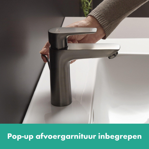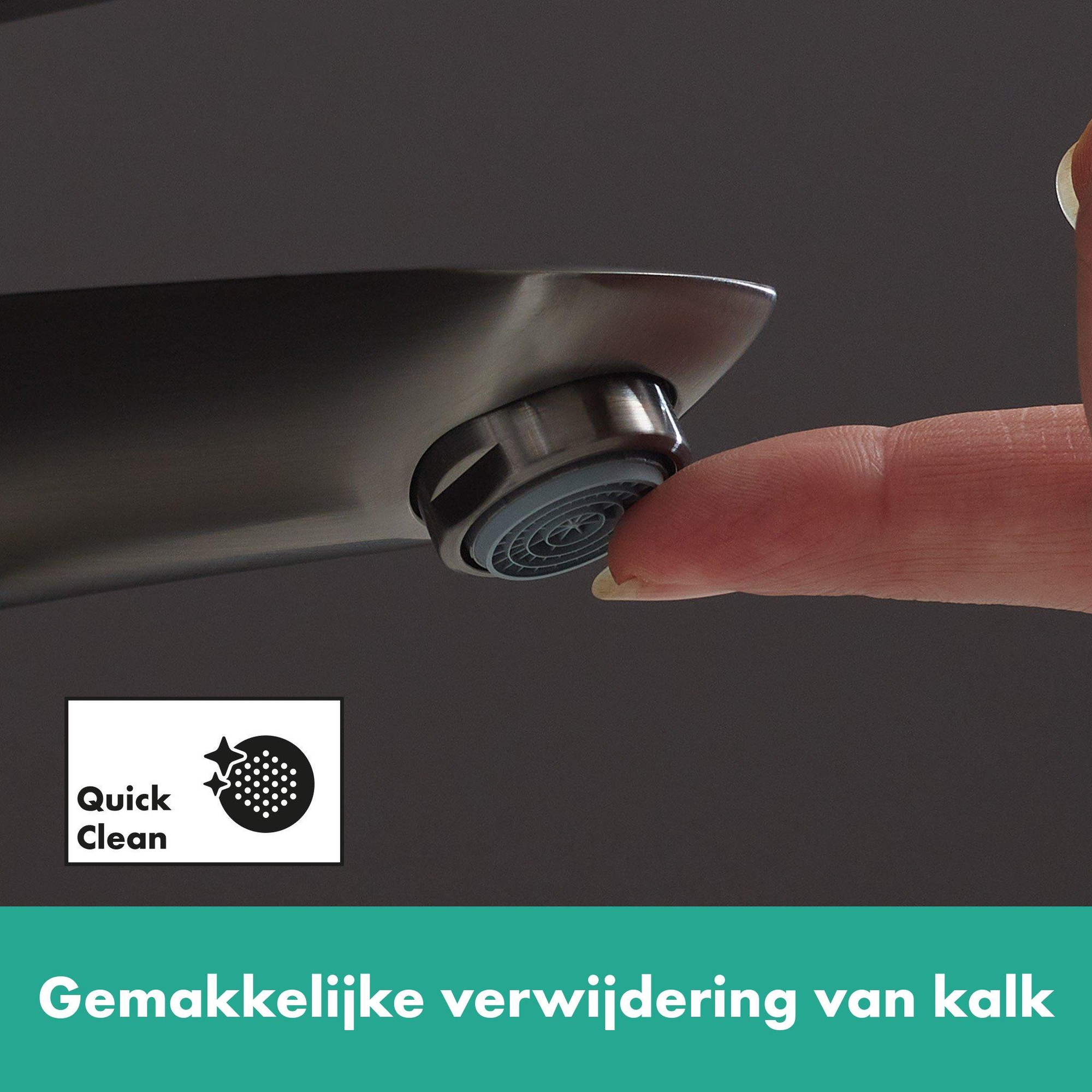 Avec des technologies intelligentes telles qu'EcoSmart, QuickClean et AirPower, vous profitez d'un robinet qui économise l'eau sans compromettre le confort. Le débit est automatiquement limité à un maximum de 5 litres par minute, ce qui est bon pour l'environnement et votre portefeuille. Le calcaire s'enlève facilement en passant simplement le doigt sur l'insert en silicone du bec. Le mécanisme de vidage à tirette intégré se commande facilement d'une seule main, rendant l'utilisation encore plus agréable. De plus, la large ComfortZone de 110 mm offre une liberté de mouvement supplémentaire au lavabo.