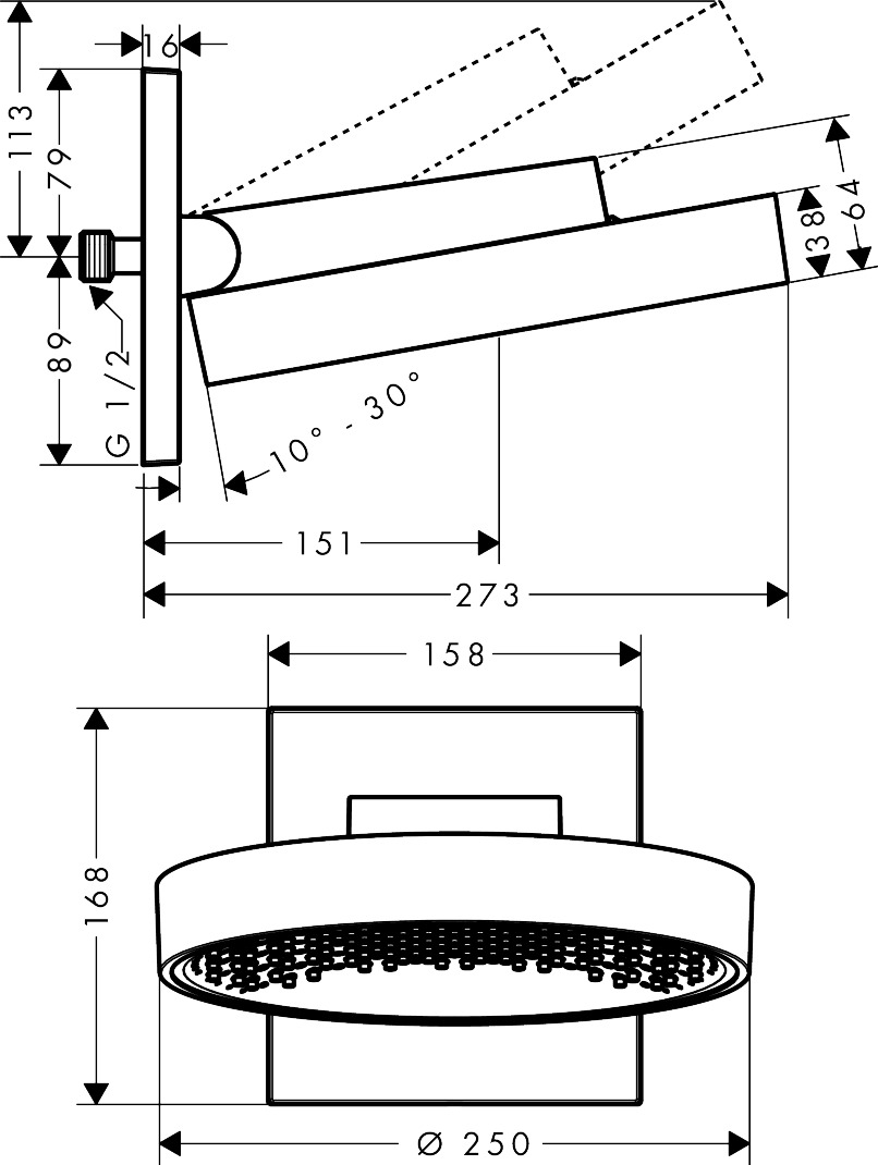 - Bras de douche réglable (10-30 degrés) pour une orientation flexible du jet d’eau