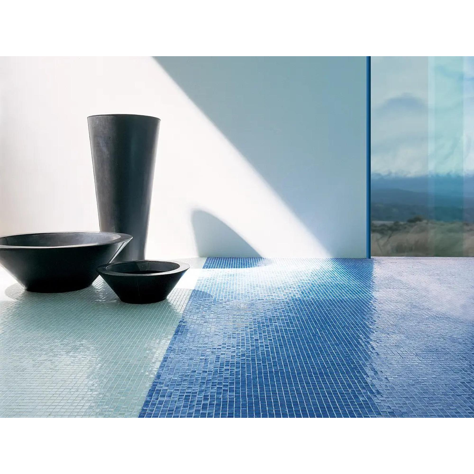 Vous rêvez d’une salle de bains où la lumière danse avec légèreté sur les parois et où chaque douche ressemble immédiatement à un mini-moment de bien-être ? Dans ce cas, un carrelage en mosaïque de verre raffiné dans une douce teinte bleue est un choix très judicieux. Grâce au format compact de la mosaïque, ce type de carrelage est idéal pour une douche à l’italienne, une niche, le mur derrière le meuble de salle de bains ou une bande d’accent luxueuse le long de votre baignoire. L’aspect transparent du verre et la couleur fraîche Bleusky apportent davantage de profondeur et de volume même aux salles de bains petites ou sombres. Que vous recherchiez une ambiance spa sereine, un style hôtel moderne ou au contraire une touche ludique dans une salle de bains épurée, avec cette mosaïque vous créez facilement une atmosphère haut de gamme et personnalisée.
