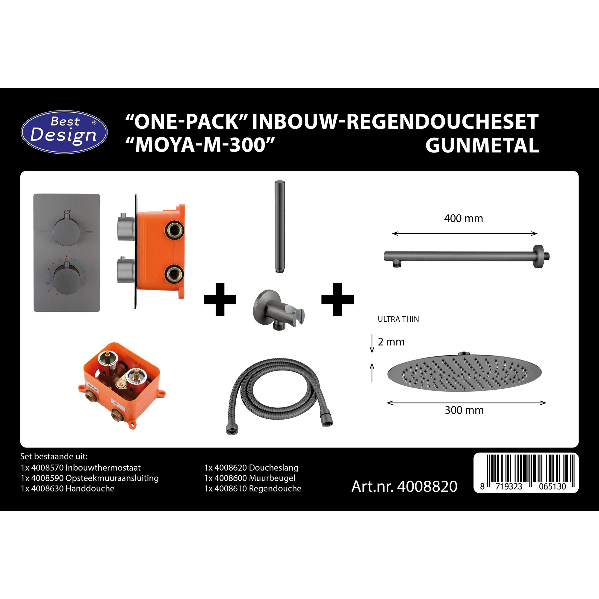 Best Design One Pack ensemble de douche de pluie encastré Moya M 300 Gunmetal