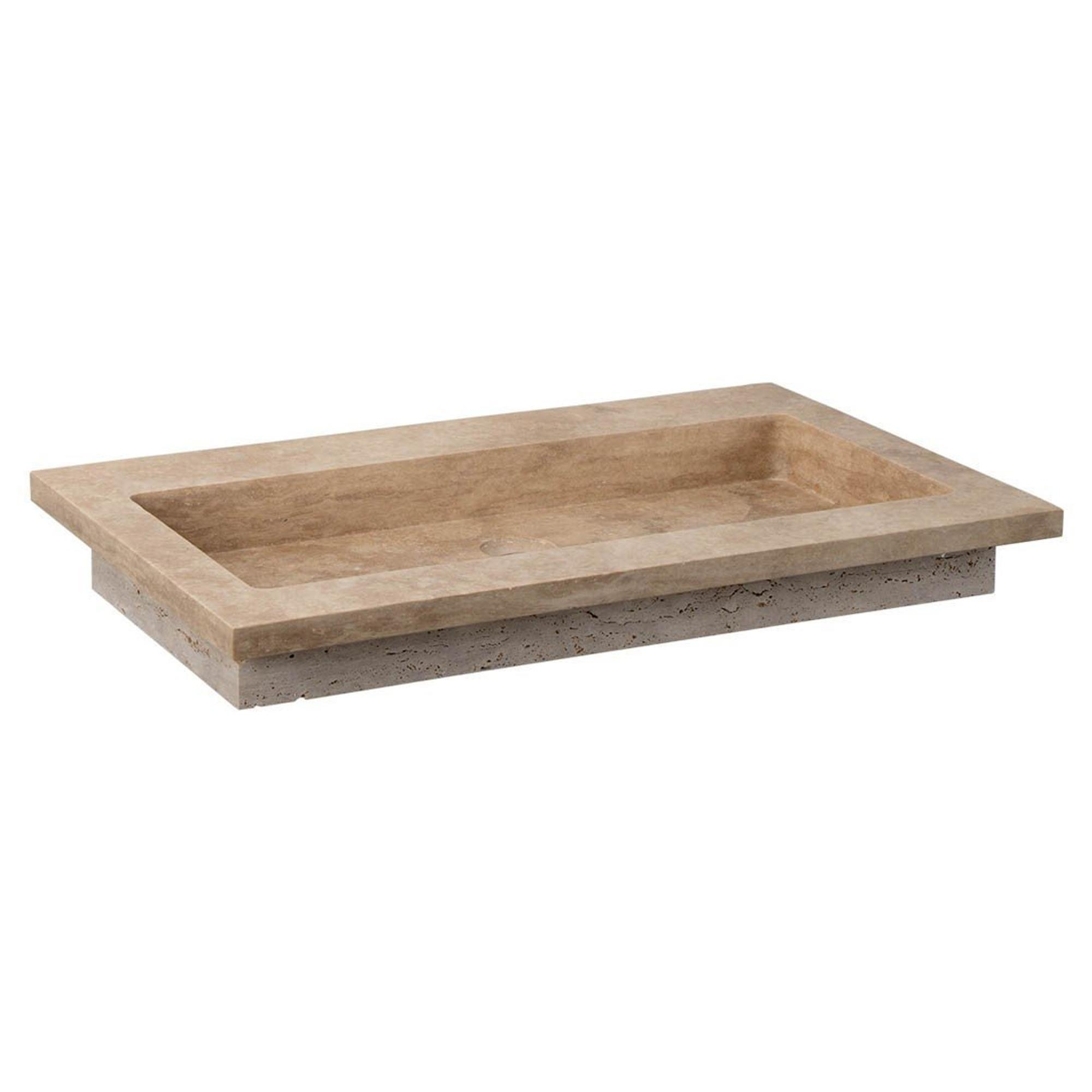 Forzalaqua Nova lavabo 60.5x51.5x9.5cm Rectangulaire 0 trous de robinet Pierre naturelle Travertin adouci