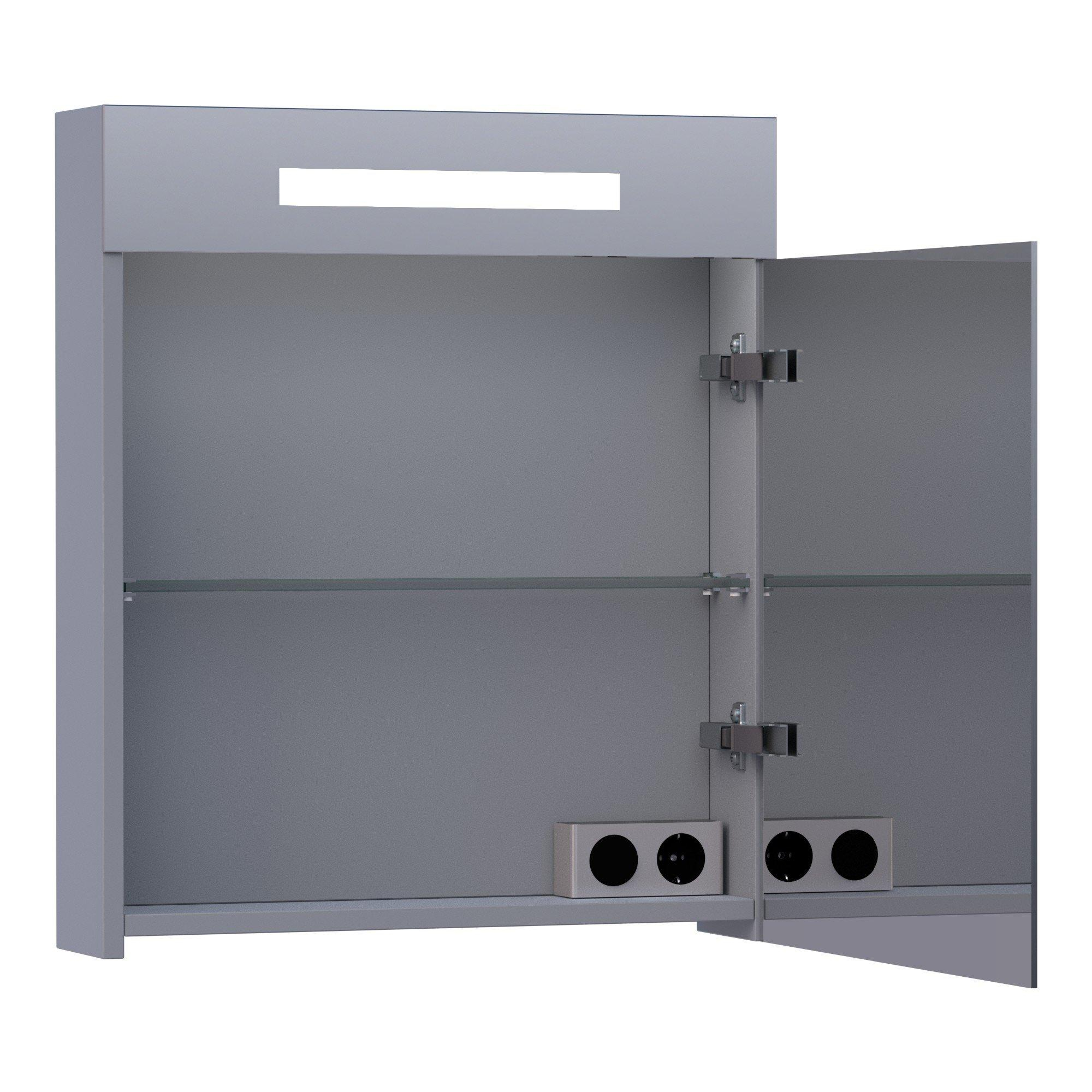 BRAUER Miroir double face armoire 59x70x15cm éclairage intégré rectangulaire 1 porte pivotante Mat Gris MDF