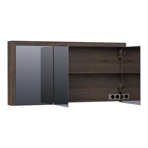 BRAUER Rise armoire de toilette - 140x70x15cm - sans éclairage - avec 3 portes miroir double face - chêne à lamelles noir