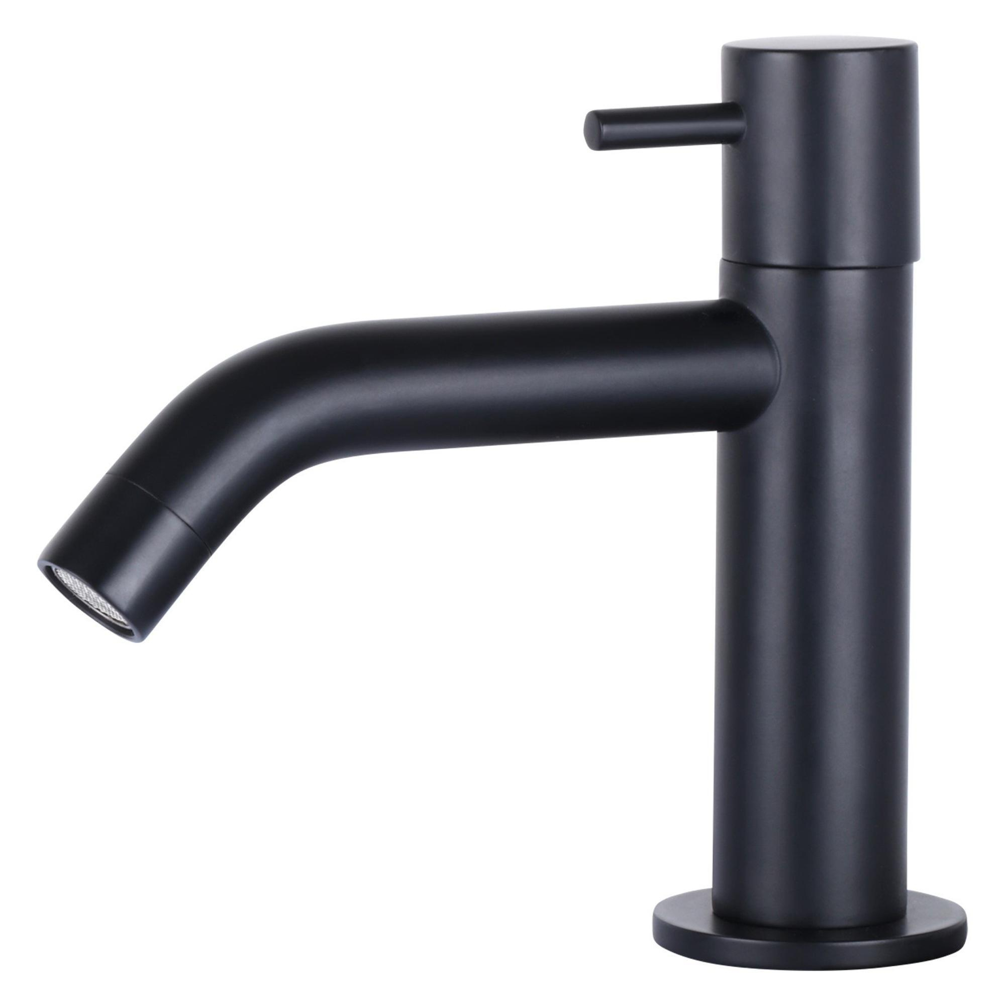 Differnz Bombai Kit lave-mains - 40x22x9cm - Droit - 1 trou de robinet - Robinet courbé noir mat - avec cadre noir - Pierre naturelle noire