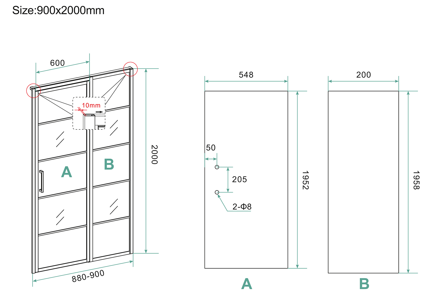 Attention : en combinaison avec une paroi latérale et un kit de raccordement, les dimensions de réglage changent, ce qui rend le montage sur un receveur de douche incompatible.