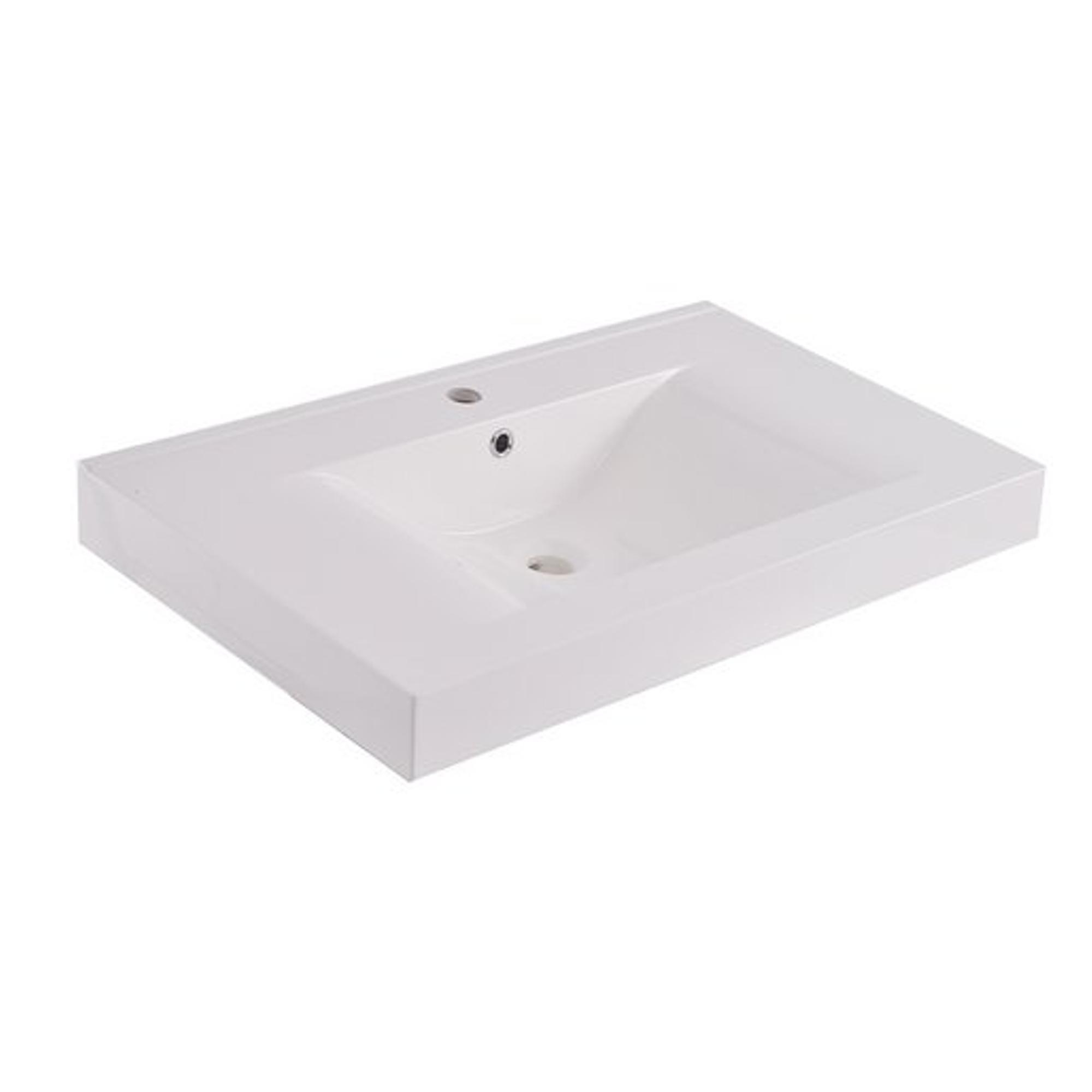Xellanz Tigris lavabo simple avec 1 trou de robinet 80x46x8 cm marbre de synthèse brillant blanc