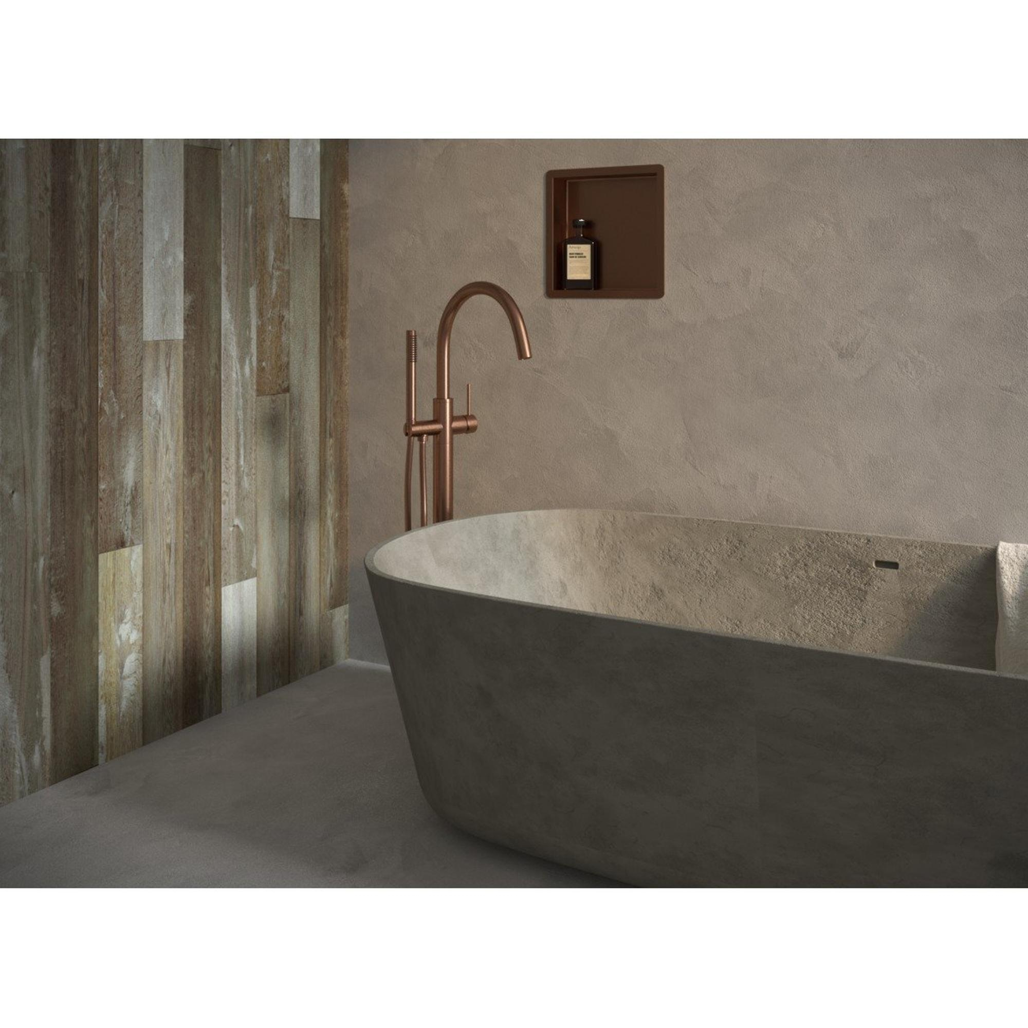 La finition en cuivre brossé et chaleureux de ce mitigeur de baignoire autoportant en fait immédiatement un véritable accroche-regard dans votre salle de bains. L’éclat subtil du cuivre crée une atmosphère luxueuse et accueillante, tandis que les poignées lisses et épurées apportent un aspect moderne et raffiné. Ce design est parfait pour ceux qui aiment un style intemporel avec une touche contemporaine. Grâce à la combinaison de fonctionnalité et d’esthétique, ce robinet devient un élément indispensable qui confère à votre salle de bains une allure exclusive. Vous profitez ainsi chaque jour d’un environnement élégant que vous montrerez fièrement à vos invités.